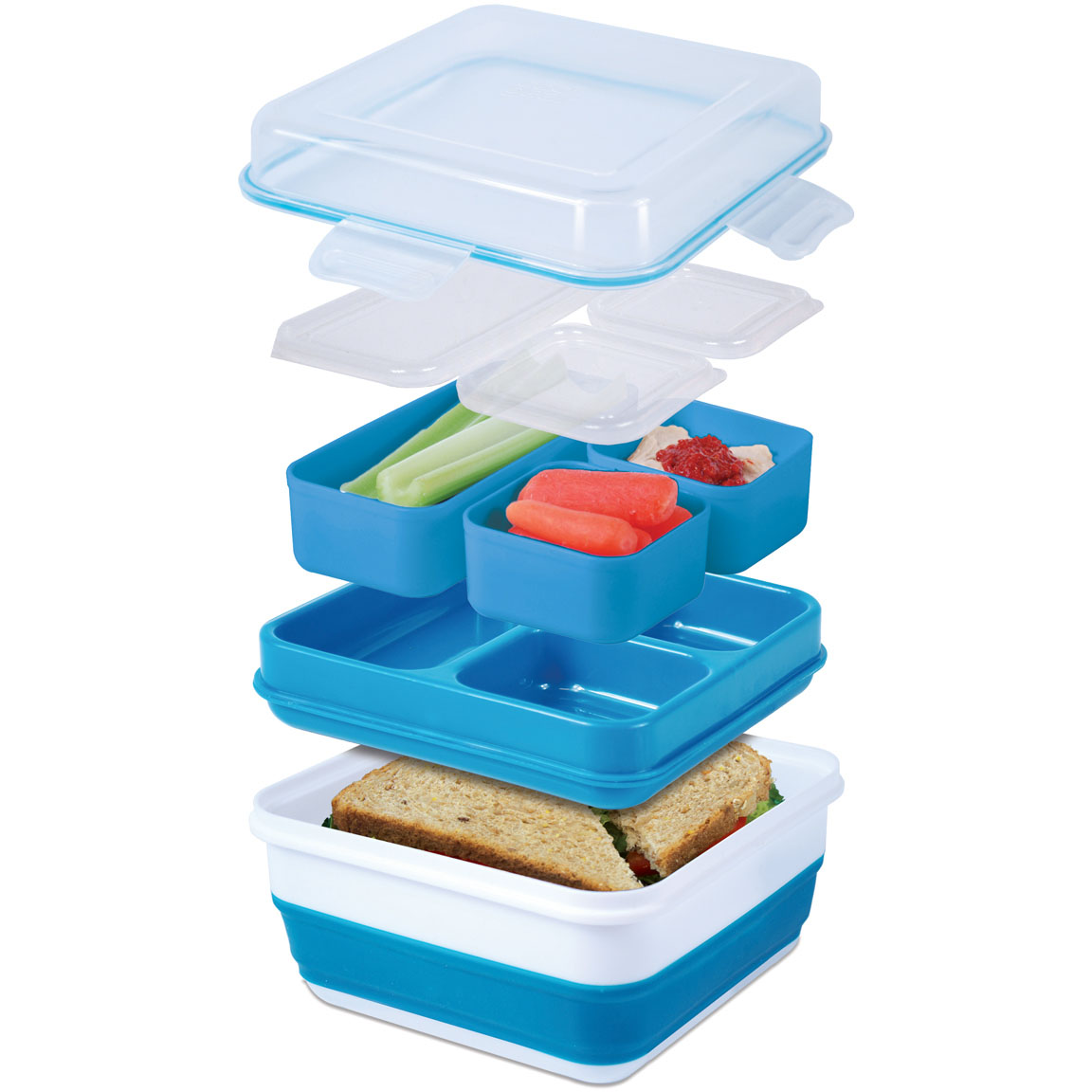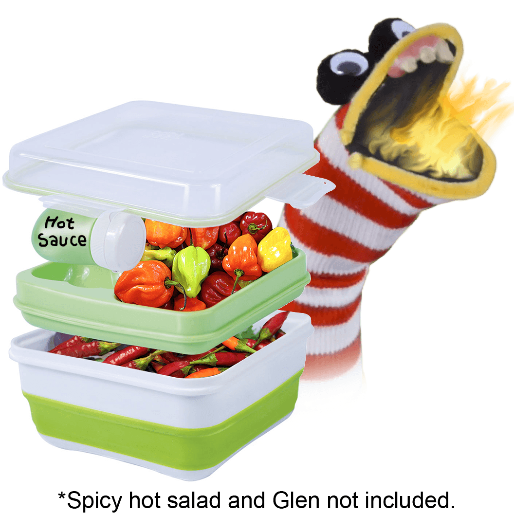 Specs ==== Steamer: - Model: 000-01488 - Vented lid with snap tight tabs - Steamer tray fits inside the bowl to keep food above the water line - Expandable bowl compresses for easy storage - Top shelf dishwasher safe - All parts are microwave safe - Main container: 6.25 cups (1.47 L) - Dimensions: 6.61in W x 1.77in H x 6.61in D Salad Kit: - Model: 000-01487 - Non-toxic gel filled freezer tray keeps food cold & fresh - Expandable bowl compresses for easy storage - Dressing container with leak proof cap nests neatly into freezer tray - Lid with snap tight tabs - Main container: 53 fl oz (1.57 L), gel tray: 12 fl oz (354 mL), dressing container: 2 fl oz (60mL) - Dimensions: 6.30in W x 2.76in H x 6.30in D Bento Box: - Model: 000-01465 - Non-toxic gel filled freezer tray keeps food cold & fresh - Expandable bowl compresses for easy storage - Lid with snap tight tabs - Main container: 53 fl oz (1.57 L), medium container: 8 fl oz (236 mL), small containers: 3.5 fl oz (103 mL) - Dimensions: 6.69in W x 2.83in H x 6.69in D Condition: New Warranty: 90 Day Mediocre Estimated Delivery: 2/1 - 2/3Shipping: $5 or free with VMP What’s in the Box? ==== Bento Box: 1x Collapsible bowl with lid 1x Freezer tray 3x Containers with lids Steamer: 1x Collapsible bowl with vented lid 1x Steamer tray Salad Kit: 1x Collapsible bowl with lid 1x Freezer tray 1x Dressing container Pictures ==== Boxes Retail box Back of retail box Salad closed Open salad box Vented steamer Open vented steamer Bento closed Open Bento Horrible Salad Price Comparison ==== $29.99 at Amazon (138 reviews, fulfilled by Amazon) Find a relevant price comparison? Please share it in a comment in this thread