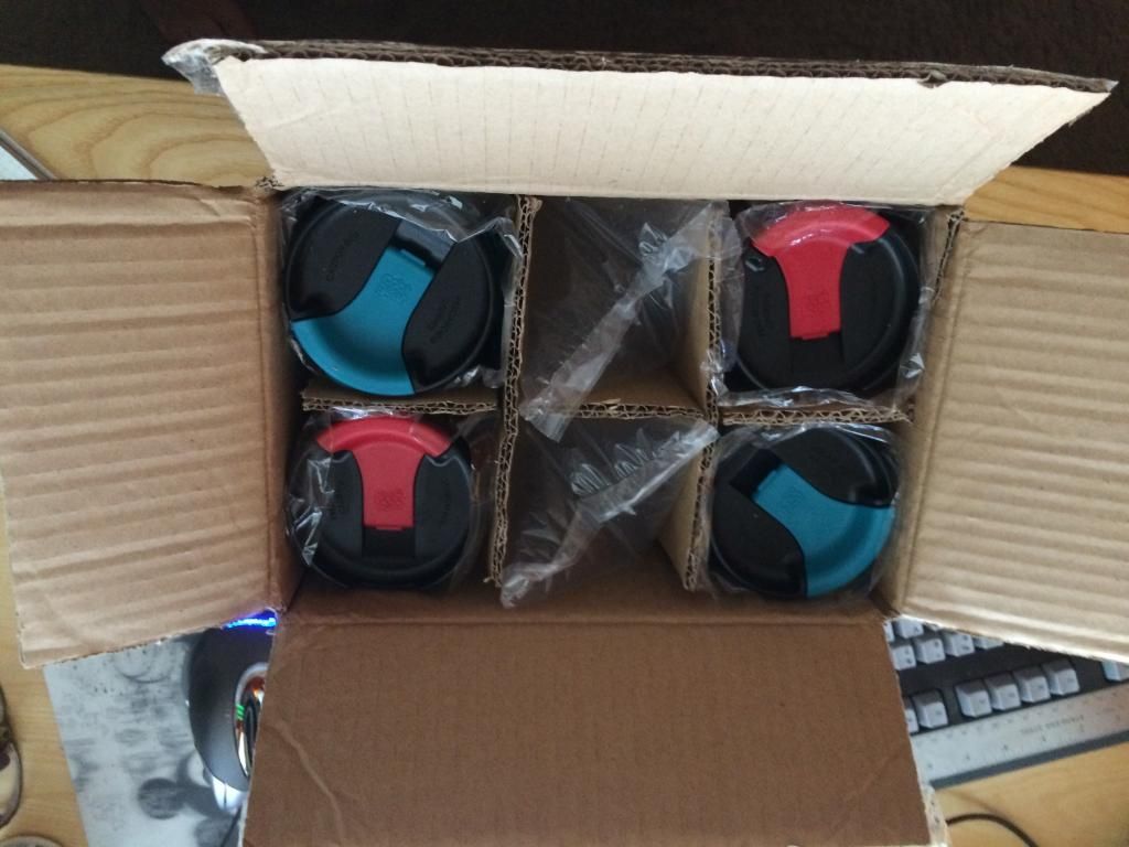 Arrived this afternoon. All 6 intact. Appears that the unopened box from the factory is 2 red, 2 blue, 1 brown, and 1 ... wait for it @Barney... purple. Nothing to complain about. (damn)