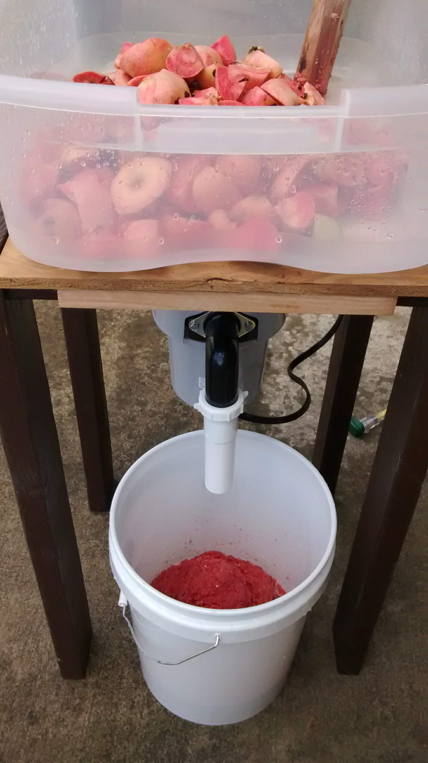 @capnjb @kittykat9180 @Kyeh I think I previously posted about a batch of (hard) cider I made with apples from our Mountain Rose tree. This image is pre-fermentation - after fermenting and back-sweetening, the cider was a pale pink (but quite tasty