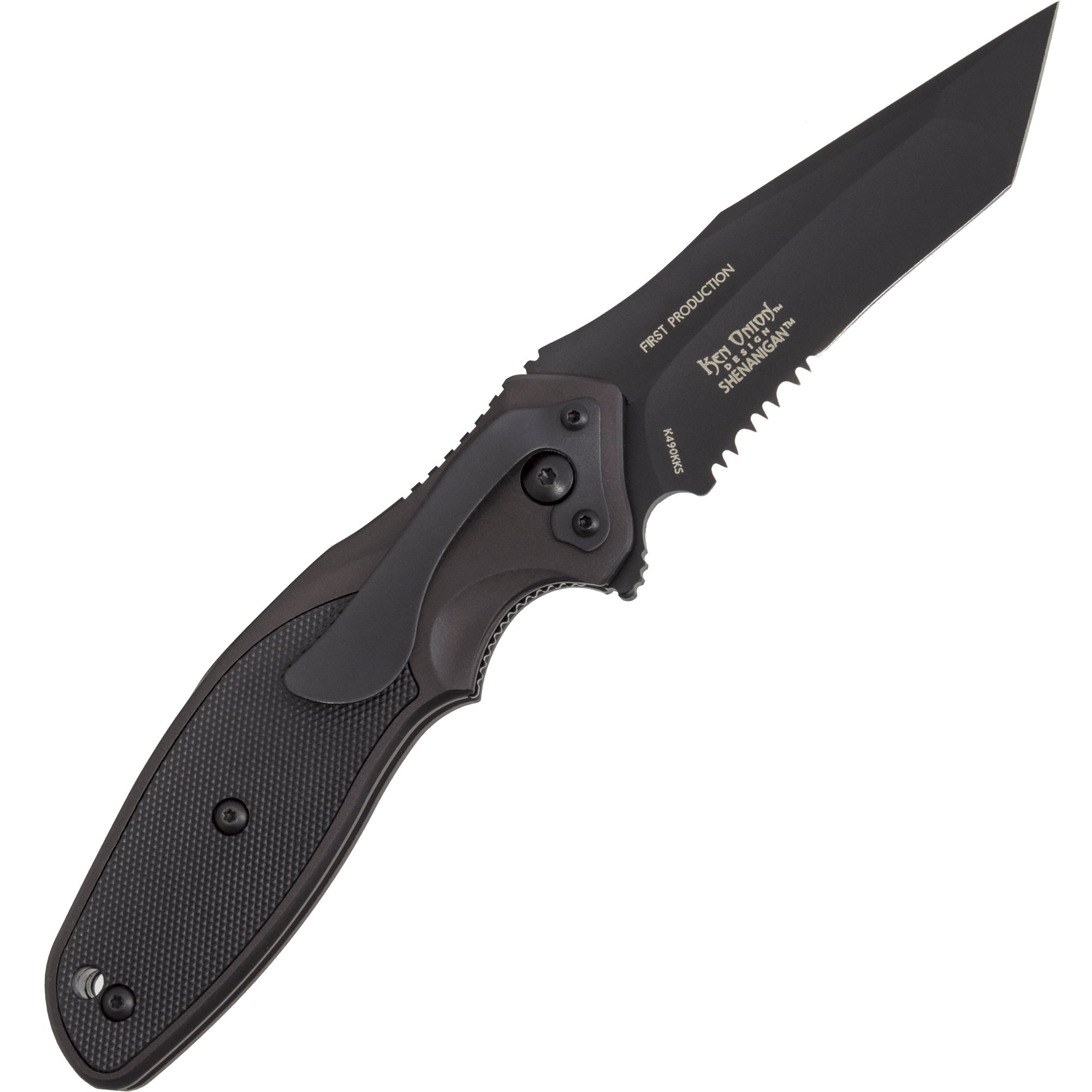 Specs ====- Model: K490KKS- Open length: 8.25in- Closed length: 4.875in- Blade length: 3.25in- Weight: 4.2oz- Handle material: Cold-forged Aluminum- Handle liner: 420J2- Blade material: AUS 8- Blade HRC: 58-59- Blade finish: Black Ti Nitride- Grind: Hollow- Style: Tanto- Edge: Combo w/Triple Point Serrations- Liner lock- Pocket clip- Flipper openingCondition: NewWarranty: Lifetime CRKTEstimated Delivery: 4/2 - 4/6Shipping: $5 or free with VMP What’s in the Box? ====1x CRKT Shenanigan knifePictures ====KnifeOther sideFolded closedIt’s pretty sharpPrice Check ====$56.08 at Amazon$125 List