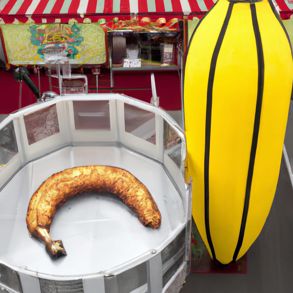 /showme a giant banana in a giant deep fryer, regular-sized banana for scale