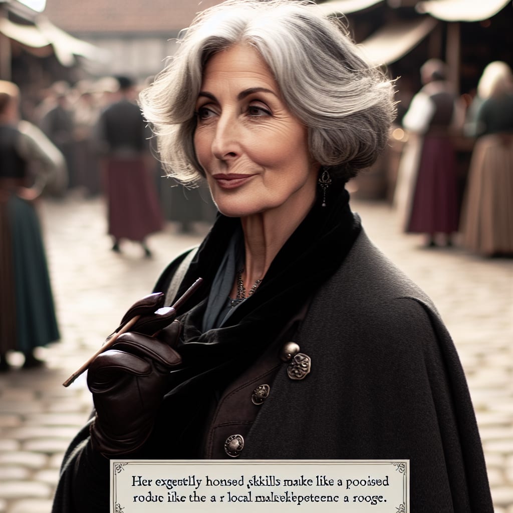 /showme grey haired female thief that shops on meh and no one notices her attempts to recruit fellow story tellers