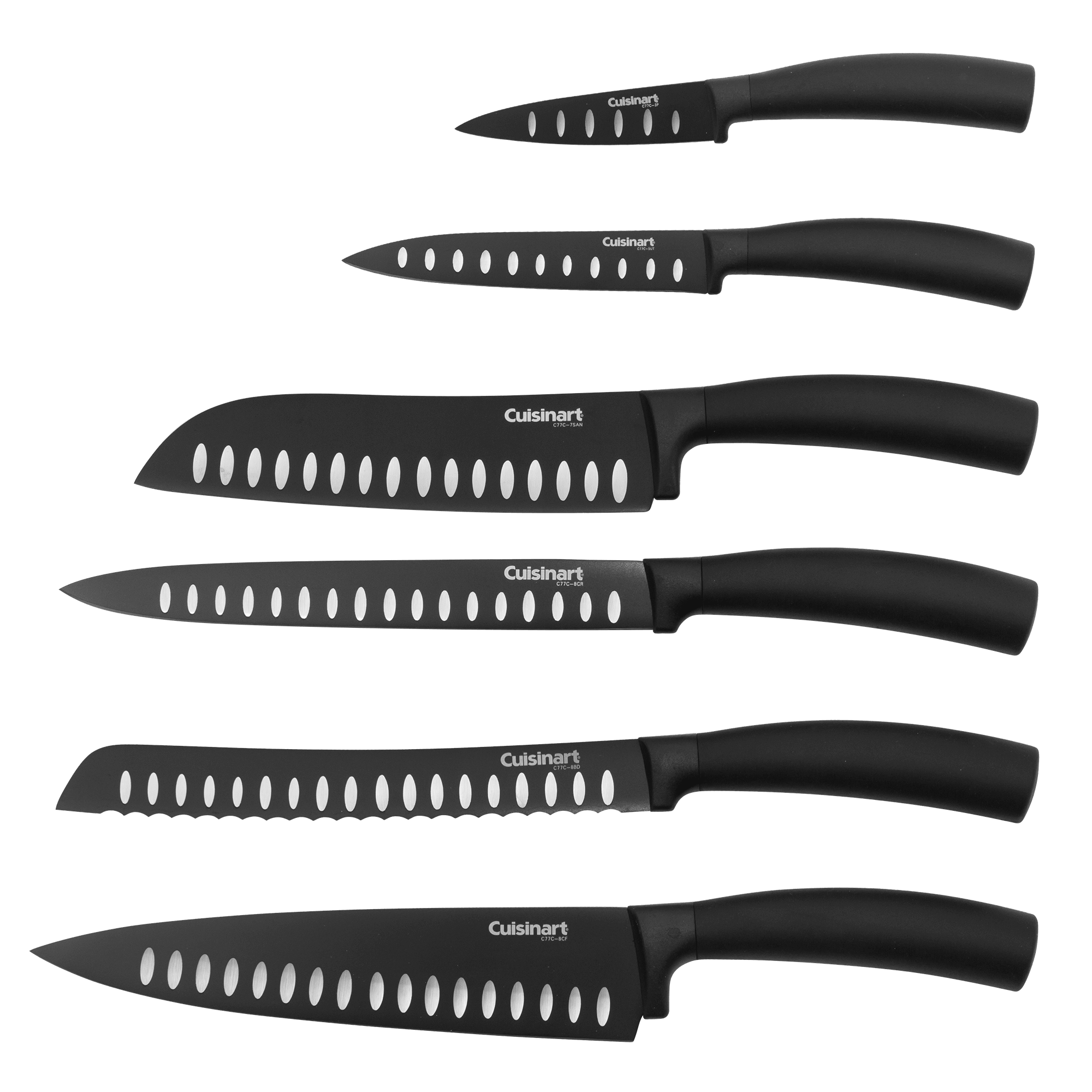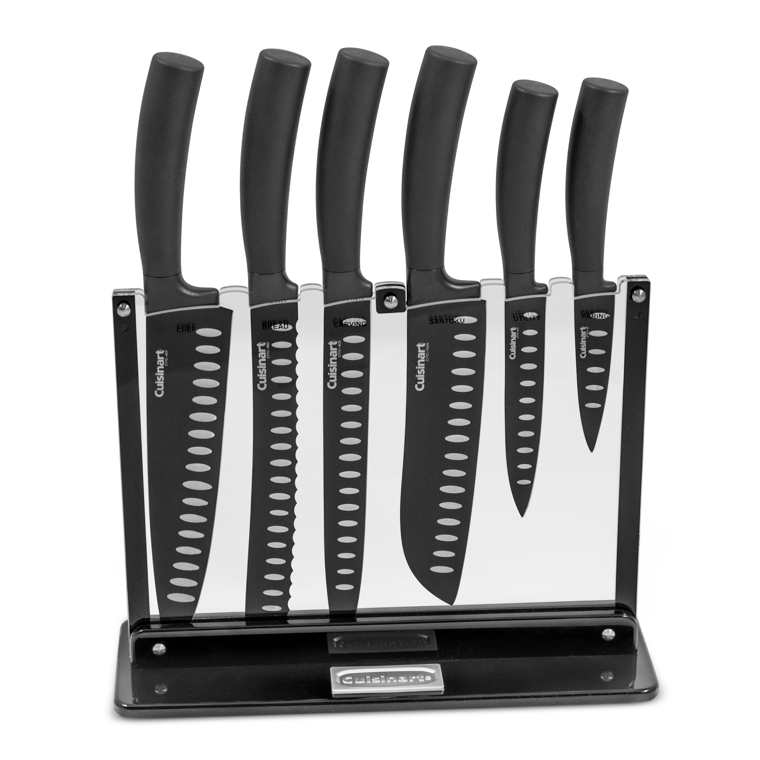 Specs====- Model # C77NS-7P- Includes: 8" Chef Knife, 8" Bread Knife, 8" Slicing Knife, 7" Santoku Knife, 5" Utility Knife, 3.5" Paring Knife, Acrylic Stand- Stainless Steel & Carbon Blade; Acrylic Stand- 14" L x 12" W x 5" H- Hand Wash Only- Use Caution When Opening Packaging; Keep Out of Reach of ChildrenCondition - NewWarranty - Limited Lifetime - CuisinartShips Via - FedEx SmartPost- $5 Shipping, Free with **VMP**What’s in the Box?!====- Acrylic Knife Stand- 8" Chef’s Knife- 8" Bread Knife- 8" Slicing Knife- 7" Santoku Knife- 5" Utility Knife- 3.5" Paring KnifePictures====SetKnivesPrice Check====$60 at Amazon$60 at Cuisinart$42.50 at Rakuten