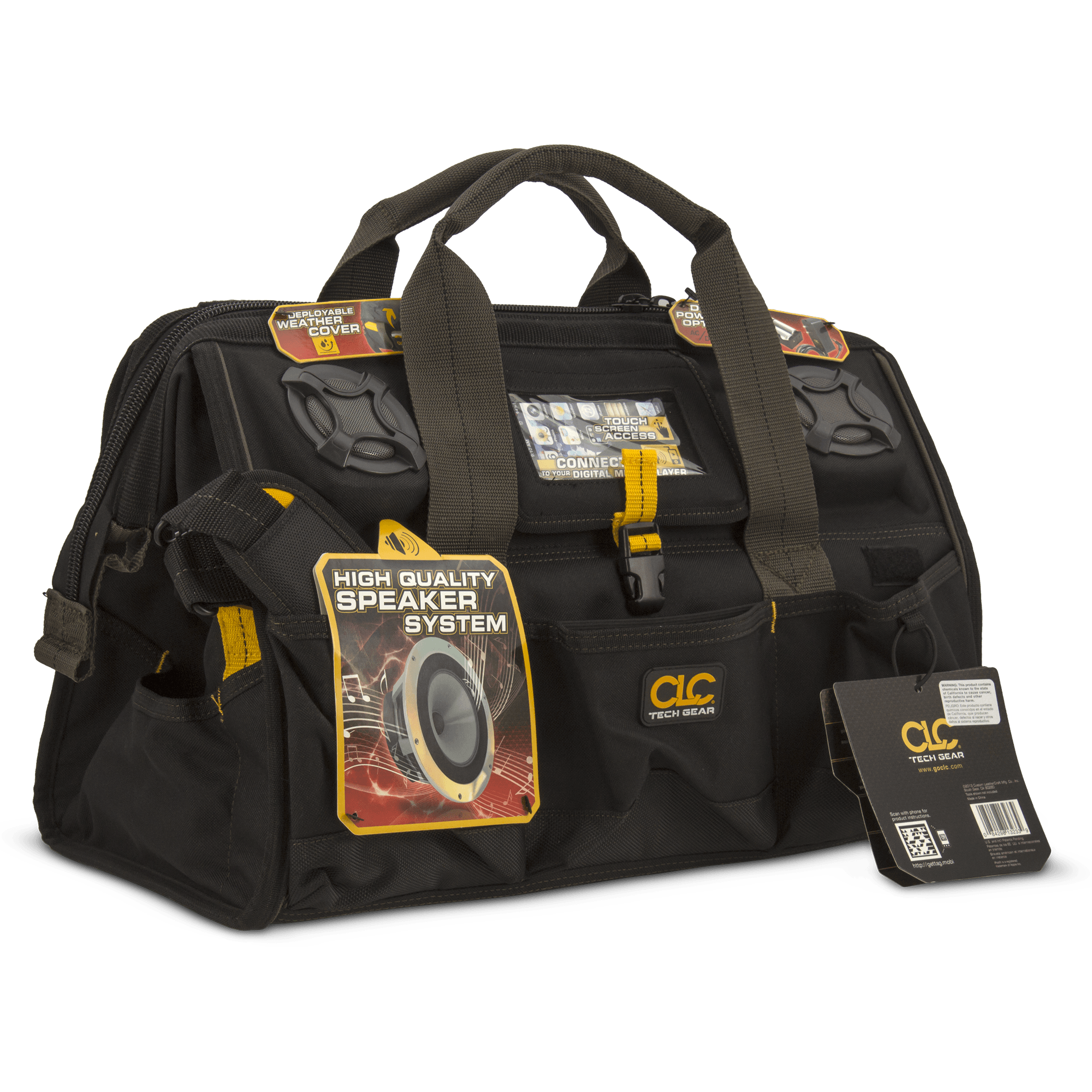 I got this for my dad for one of his Christmas Presents. After I received it I was bummed that I didn’t buy 2 of them because now I want one! It’s a really nice and very well made tool bag – especially for the $24 price tag. The bag alone was more than worth it for the price. The built-in speakers are a bonus! I’m really impressed by the quality of the bag. I didn’t expect the quality to be this good. I was expecting a basic tool bag. I’ve never owned a Custom LeatherCraft product before.