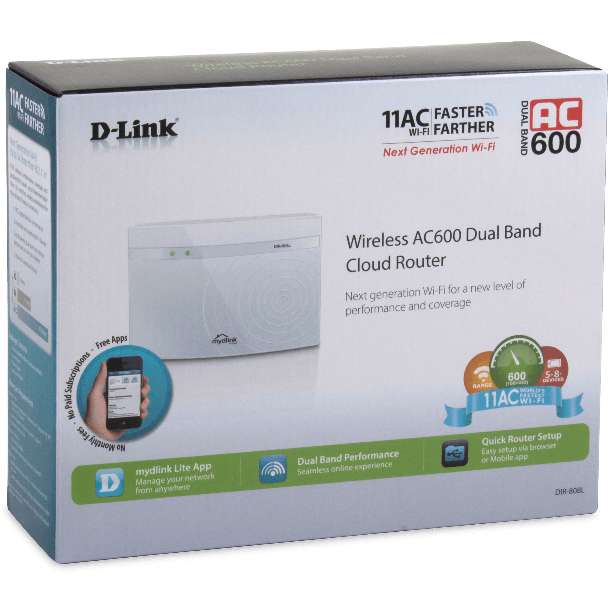 Specs ====- Model: DIR-808L - Dual Band Performance, up to 150/433Mbps - 2.4GHz: IEEE 802.11n, IEEE 802.11g - 5GHz: IEEE 802.11ac, IEEE 802.11n, IEEE 802.11a - 4 Ethernet Ports (10/100) - 1 Ethernet WAN Port (10/100) - WPS Push Button - Reset Button - Internal Antennas - WPA/WPA2 Security - Firewall Features: NAT, SPI - Advanced Security Features: VPN pass through, Guest Zone Support, IPv6 - DC 12V/2A - Minimum OS Requirements: Mac OS 10.4/Windows XP or newer - Compatible with QRS Mobile and mydlink Lite mobile apps available for iOS and Android - Product Dimensions/Weight: 6.2" x 4.4" x 2.1"/0.38 Lbs. - Box Dimensions/Weight: 8.2" x 5.4" x 4.1"/1.12 Lbs.Condition: NewWarranty: 1 Year D-LinkEstimated Delivery: 10/8 - 10/10Shipping: $5 or free with **VMP**What’s in the Box?====1x Wireless AC600 Dual Band Cloud Router (DIR-808L) 1x Ethernet Cable 1x Power Adapter 1x Quick Install Guide Pictures====Retail boxThe routerEverything includedFront viewPrice Comparison====$49.99 List, $24.88 at Amazon Find a relevant price comparison? Please share it in a comment in this thread