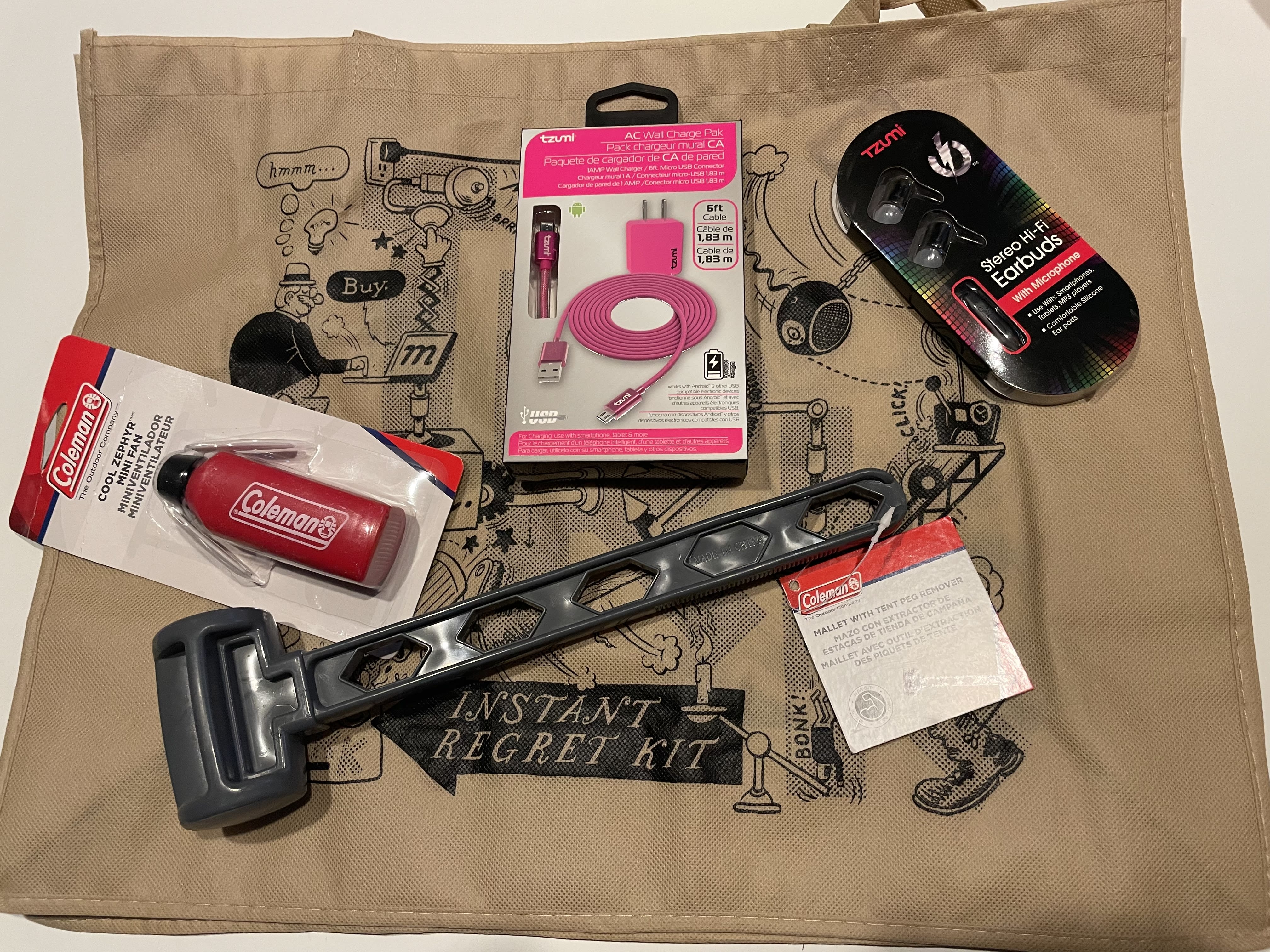 1x Coleman plastic stake mallet (maybe it’ll knock some sense into me to stop buying these… Nah)