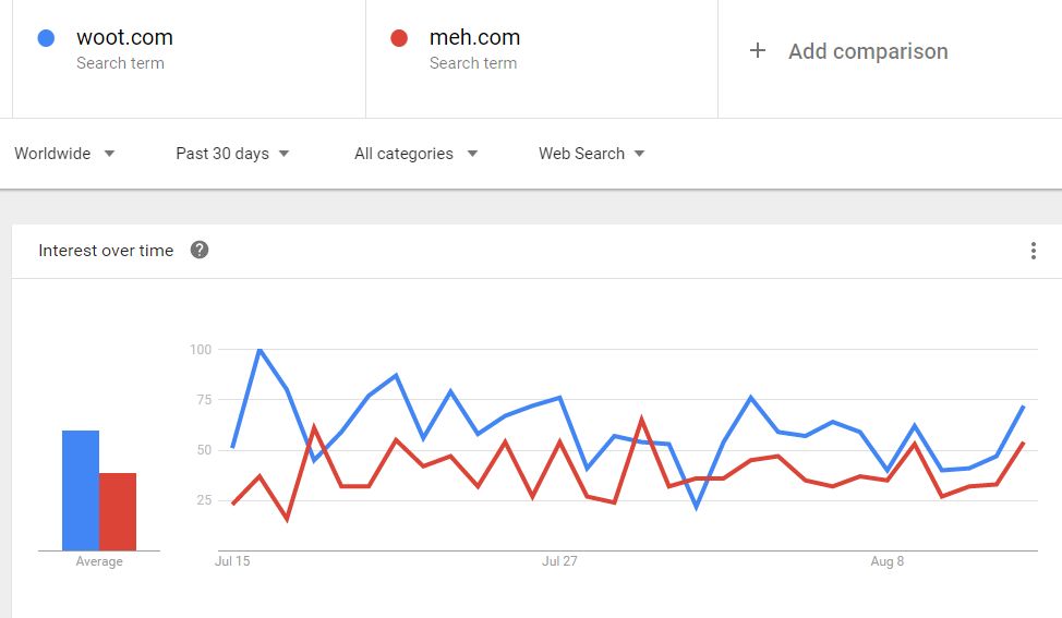 doubledwas a dart board.@narfcake If you look at the current google trend with meh.com and woot.com search terms, Meh surpassed woot for the first time recently. I am pretty much done with woot.