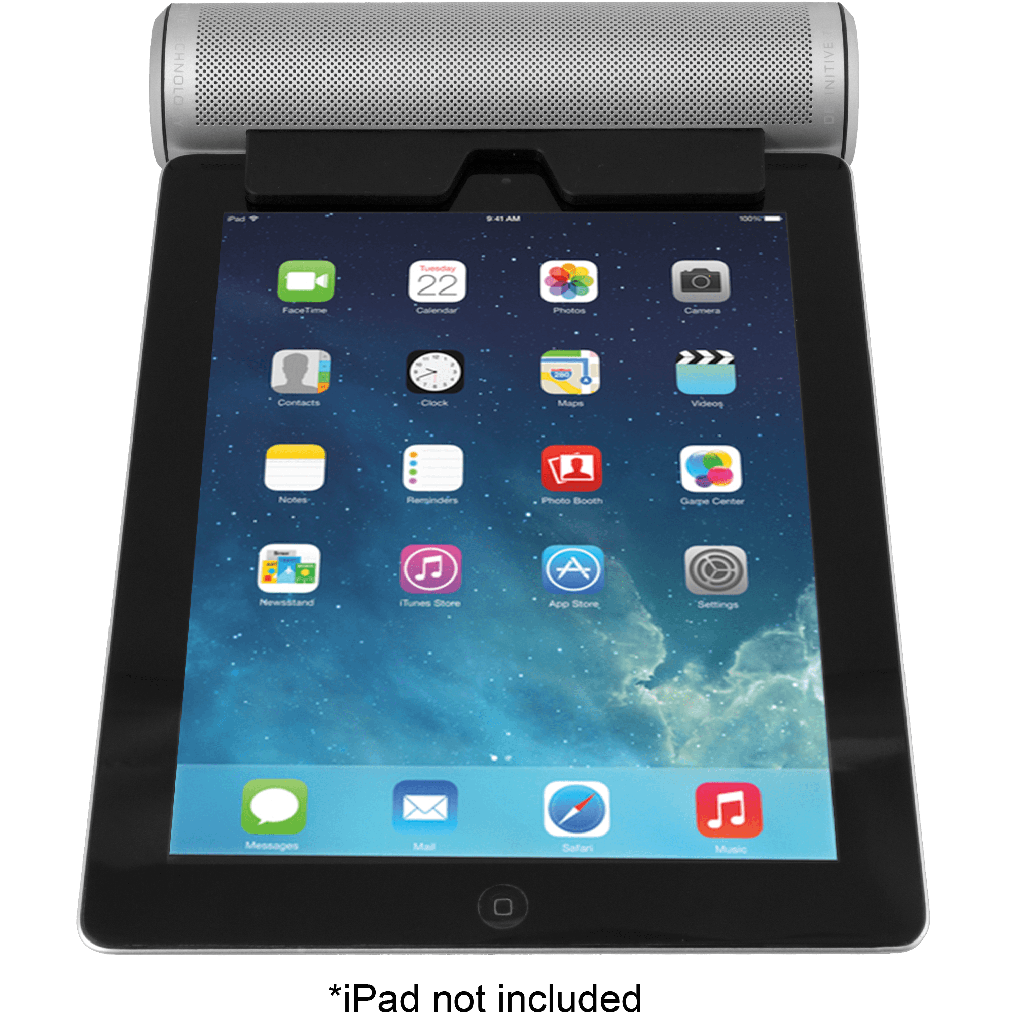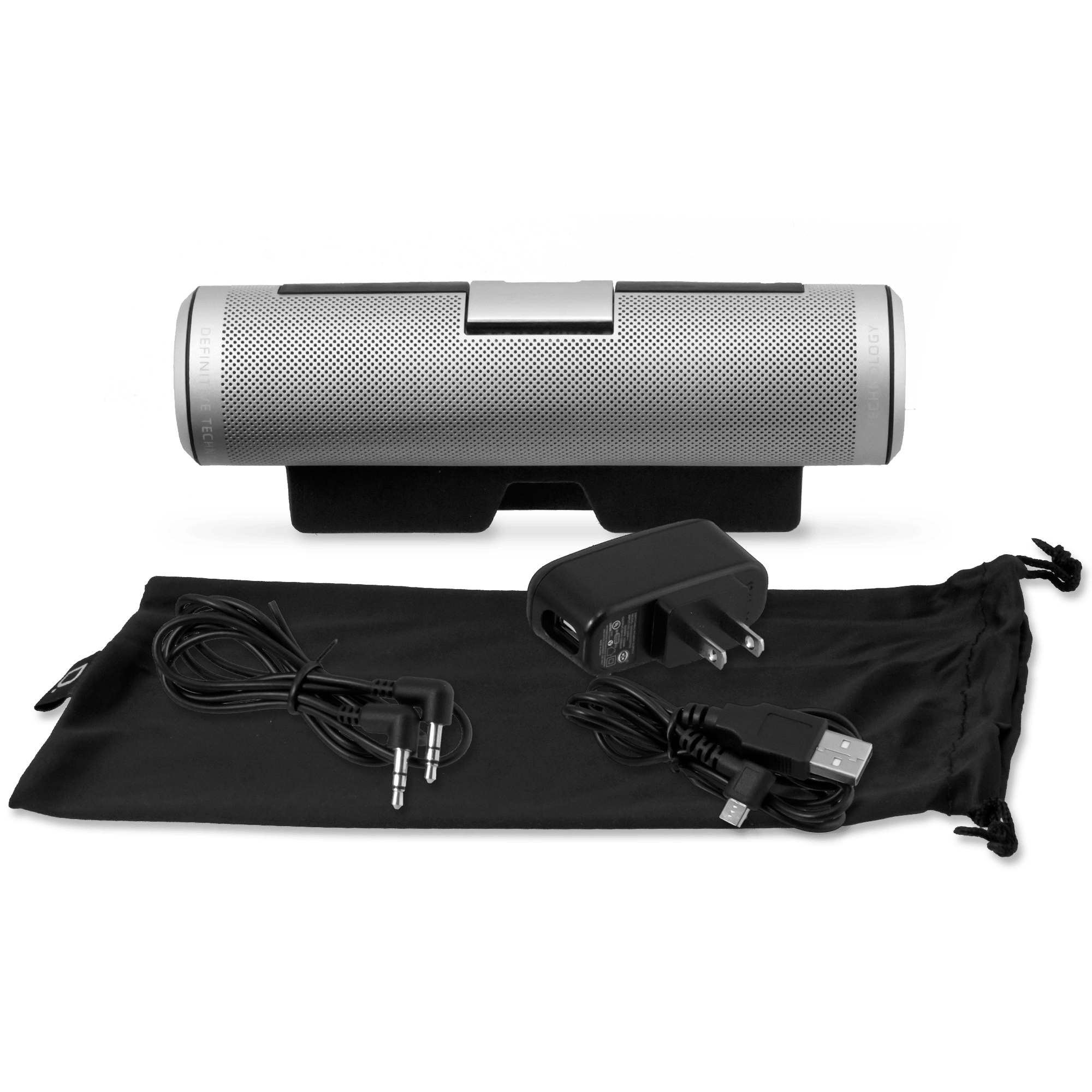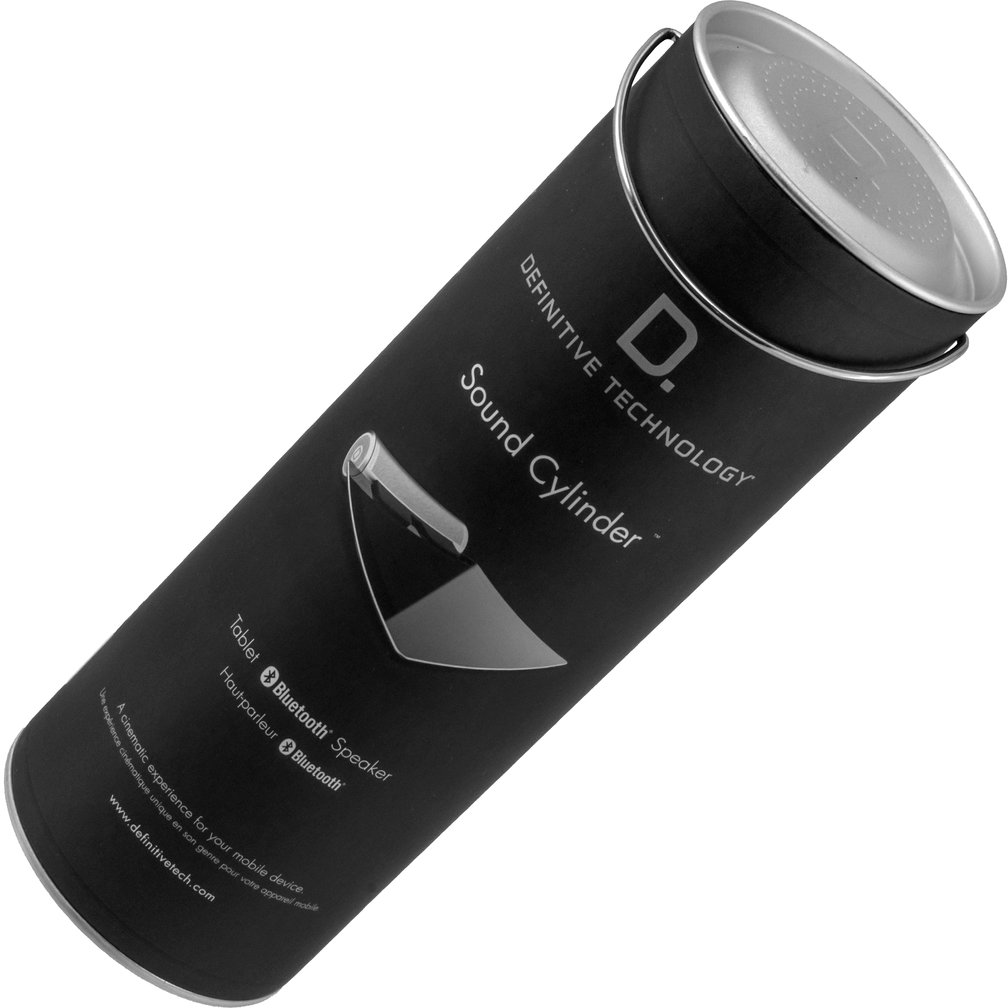 Specs ====- Model: BCPB- Battery life: 10 hours- Charges via micro USB (included)- Dimensions: 7.5 x 2.75 x 1.75 in- Drivers: 2x 2W 25mm driver, 1x 4W 43mm bass driver- Frequency response: 60Hz - 20kHz- Output: 85dBA @ 1m- Input: Bluetooth, 3.5mm aux- Bluetooth range: 33 feet- Weight: 320 g- AC adapter: 5v DC 1A USB- Mounting slot expands from 1/4in to 1/2inCondition: NewWarranty: 1 Year Definitive TechnologyEstimated Delivery: 8/28 - 8/31Shipping: $5 or free with **VMP**What’s in the Box?====1x Sound Cylinder bluetooth speaker1x 3.5mm aux cable1x Micro USB to USB charging cable1x 1A USB charger1x Storage bagPictures ====Plop it on top of your laptop!Back viewHolding a iPadFront viewPropping up an iPadEverything includedRetail packagingPrice Comparison====$199 List, $59.95 at AmazonFind a relevant price comparison? Please share it in a comment in this thread