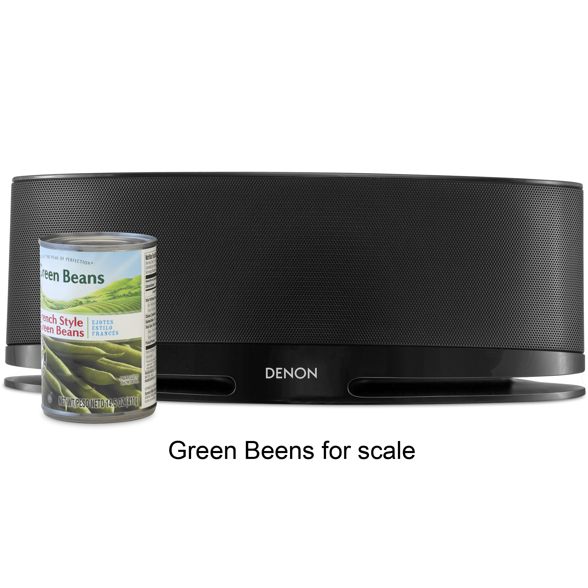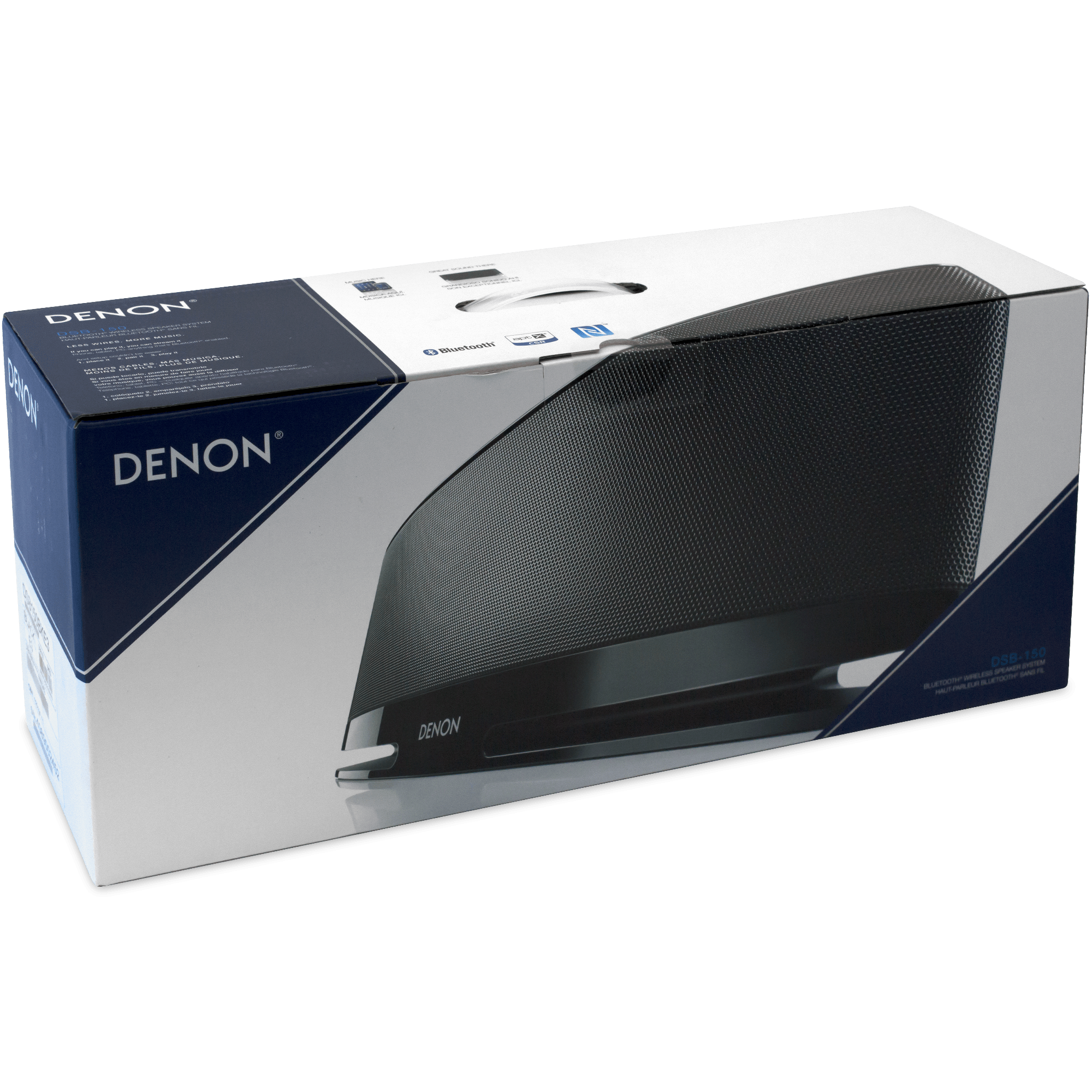 Specs ====- Model: DSB-150- Dual 3.5" high-performance Denon-designed speakers- Speakers are vented for extended bass response- Compatible bluetooth profiles: A2DP/AVRCP- Supported codecs aptX low latency/AAC/SBC- Multi-pairing: up to 8 devices- Tap-to-pair functionality via NFC (Near Field Communication)- AptX codec for CD-like sound quality over bluetooth… to remind you what CD sound quality is like- 3.5mm auxiliary input- Easy-to-use top mounted control buttons- Blue LED volument level display- Included remote control with music playback and volument controls- Headphone output- High-gloss finish- Dimensions: 15.75" x 6" x 5.35"- Weight: 4.5 Lbs.- Manufacturer Spec Sheet- Quick Start Guide- Owner’s ManualCondition: New Warranty: 1 Year DenonEstimated Delivery: 4/14 - 4/17Shipping: $5 or free with VMP What’s in the Box? ====1x Denon Tabletop Bluetooth Speaker1x Remote Control1x Power AdapterPictures ====FrontThe BoxGreen Beans for ScalePrice Check ====$199.00 List, $130.25 at Amazon