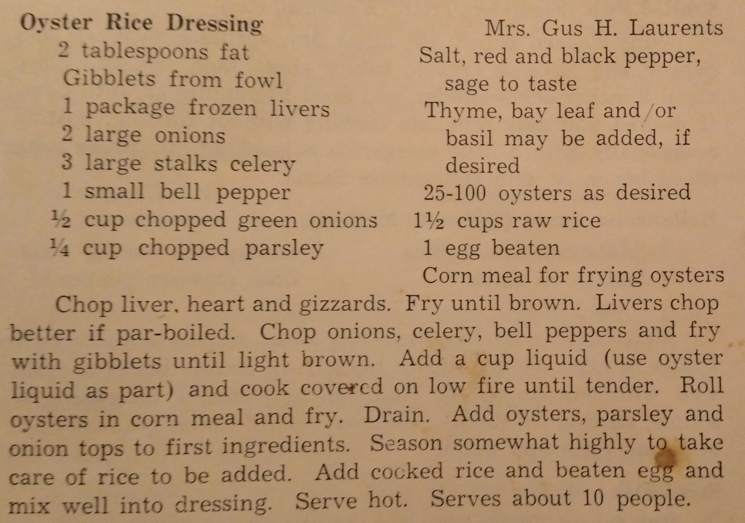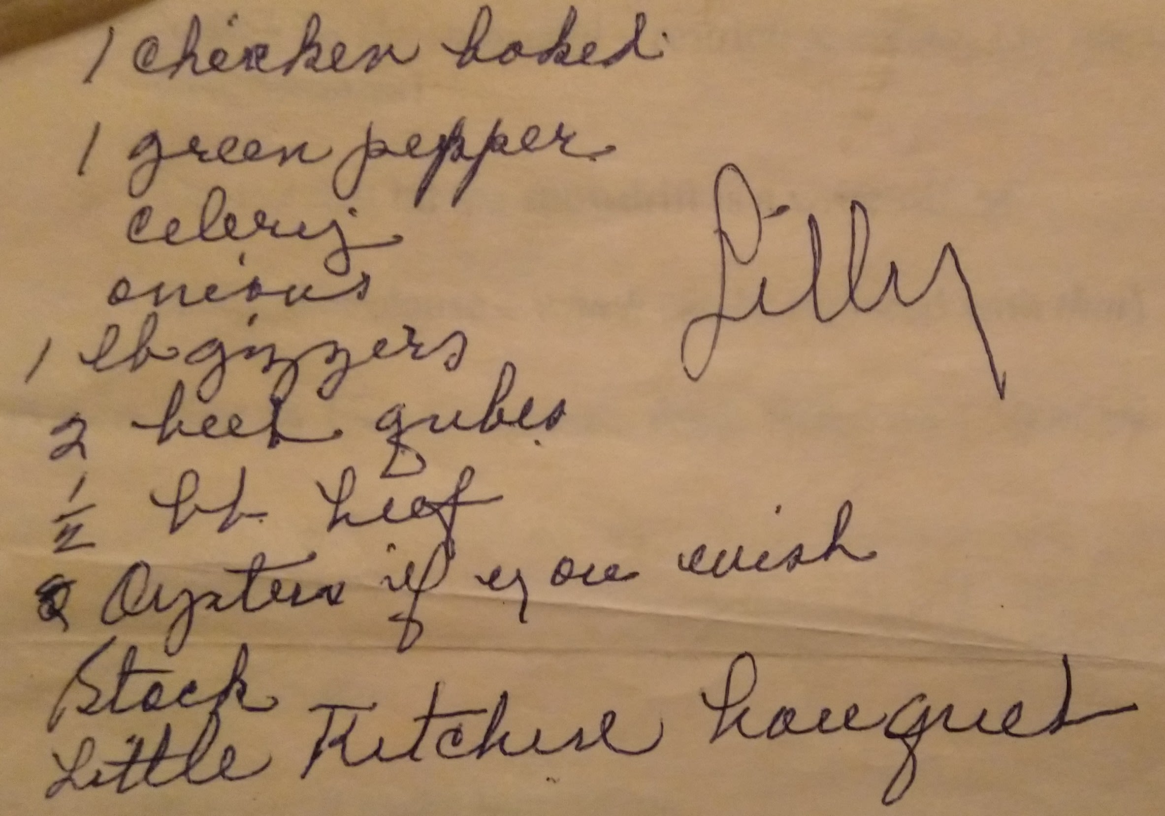 I think this might be a recipe for dressing. Maybe for stuffing peppers with? I would add rice, and I’m sure my grandmother wouldn’t list that as an ingredient since rice was a staple, and in everything anyway. Cooking was “start a pot of rice”, and then you figured out what to cook to go with it.