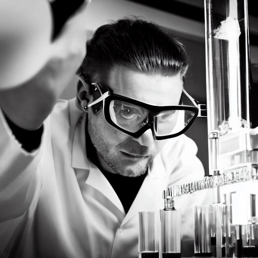 /showme evil scientist creating diamonds in a laboratory, black and white, high contrast