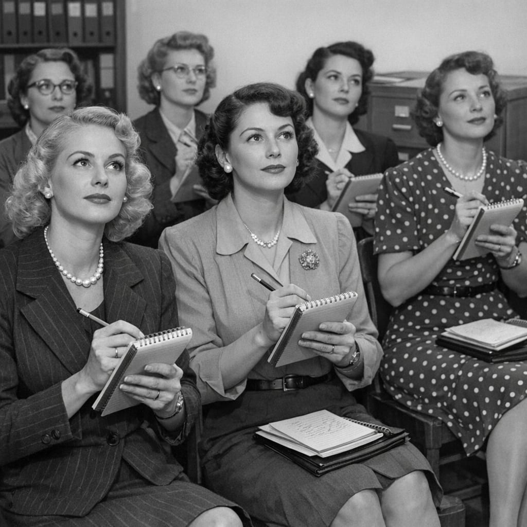 @therealjrn Here’s the image you requested for “a cadre of secretaries attentivly taking shorthand dictation”