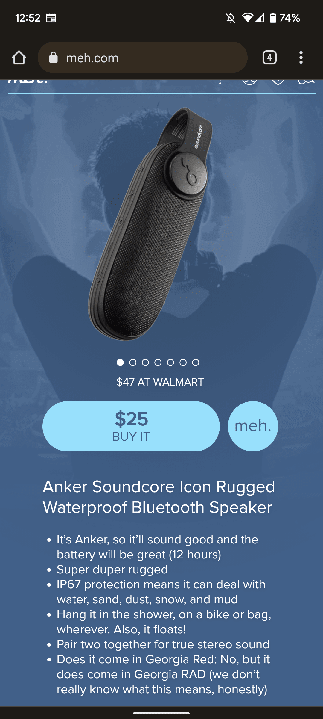 I’ll post a screenshot later. So far, I’m setting Chrome to force meh.com to use desktop mode, but that’s kind of defeating the point.