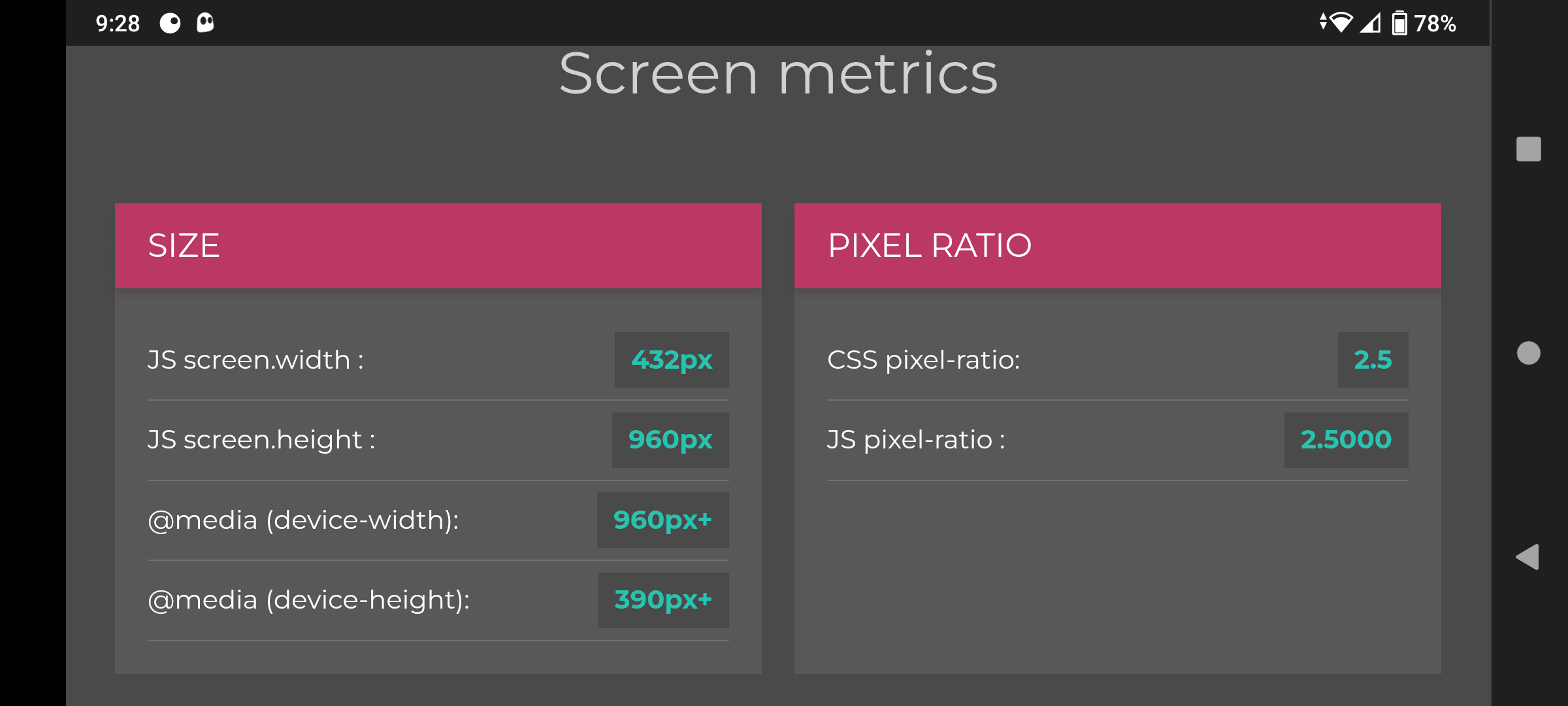 @mike808 980px is a bonkers width on mobile. It’s also unrelated to the JS screen.width or screen.height reported.
