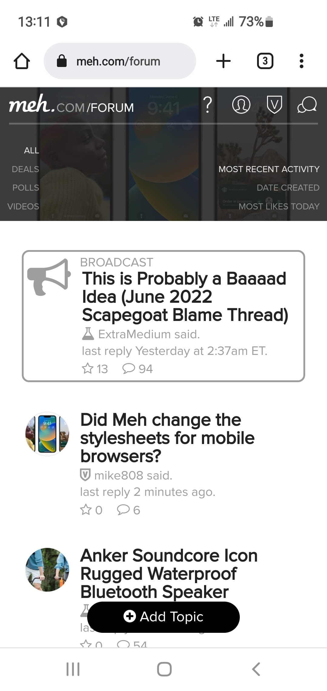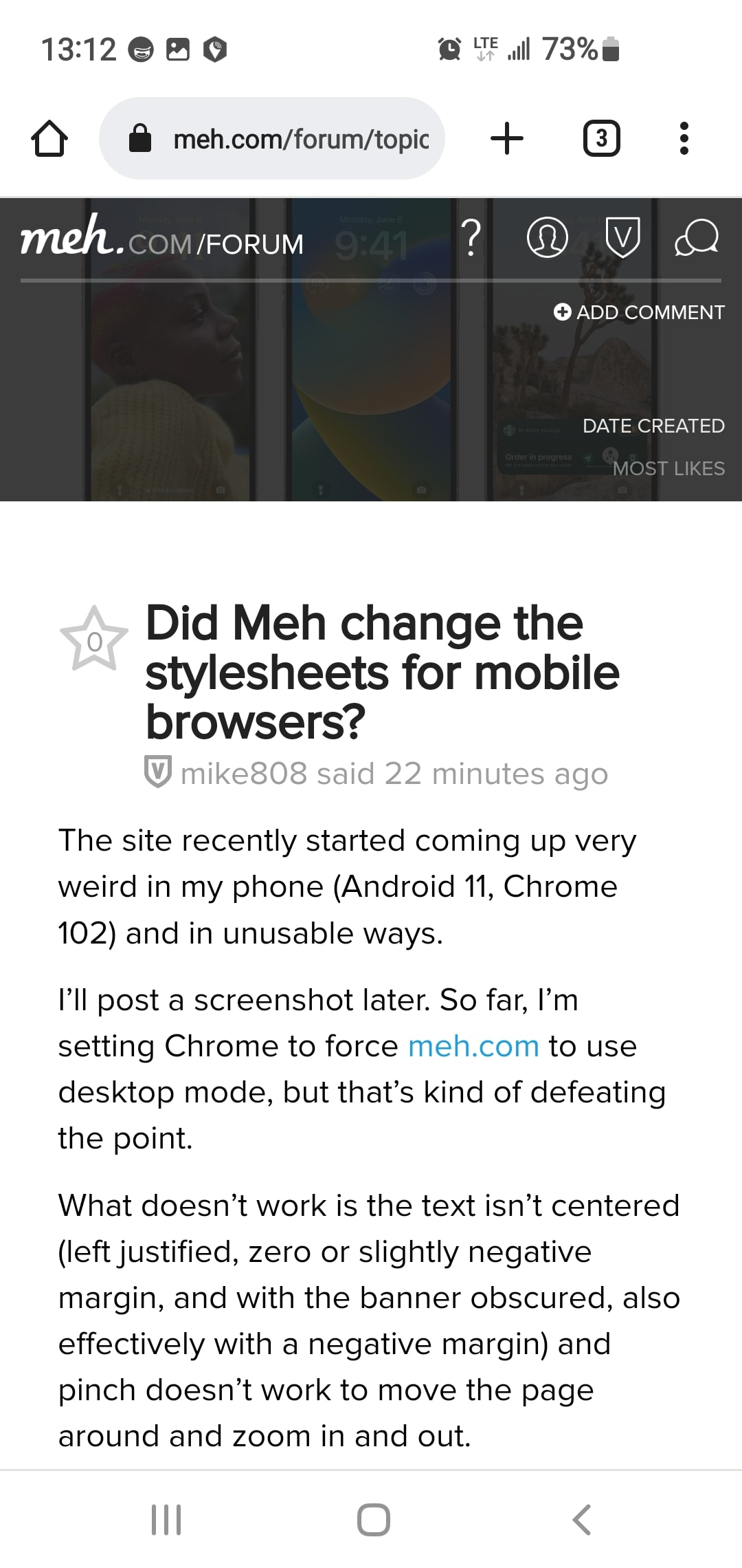 Did Meh change the stylesheets for mobile browsers?