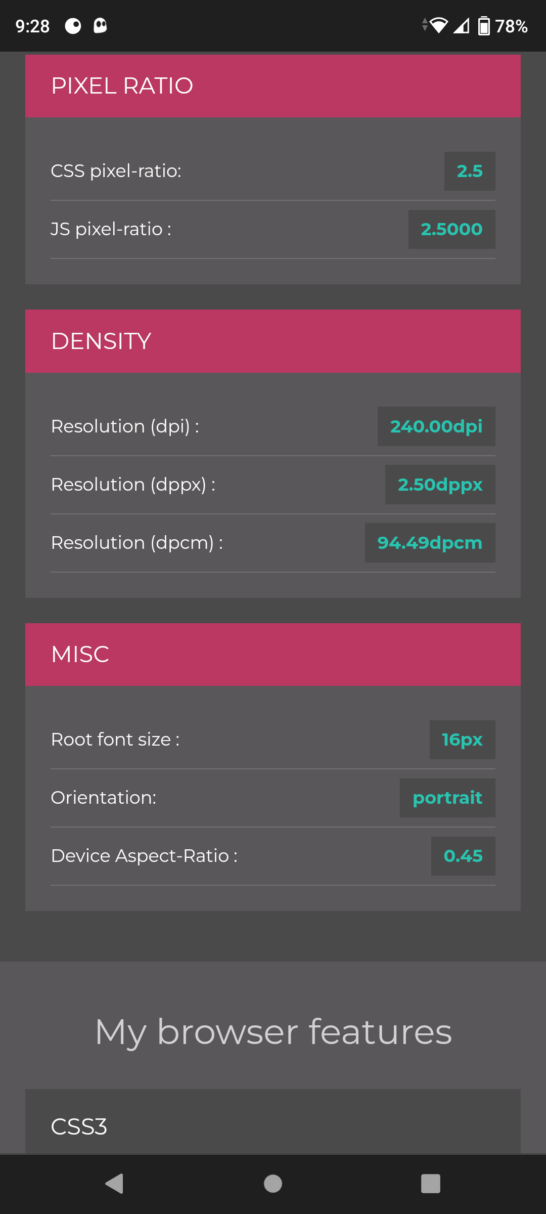 For those that might have the same issue, visit mydevice.io (turn off forced desktop mode and put the device in portrait mode) and note the screen width in pixels (the number in the big font size in my screen shots above).