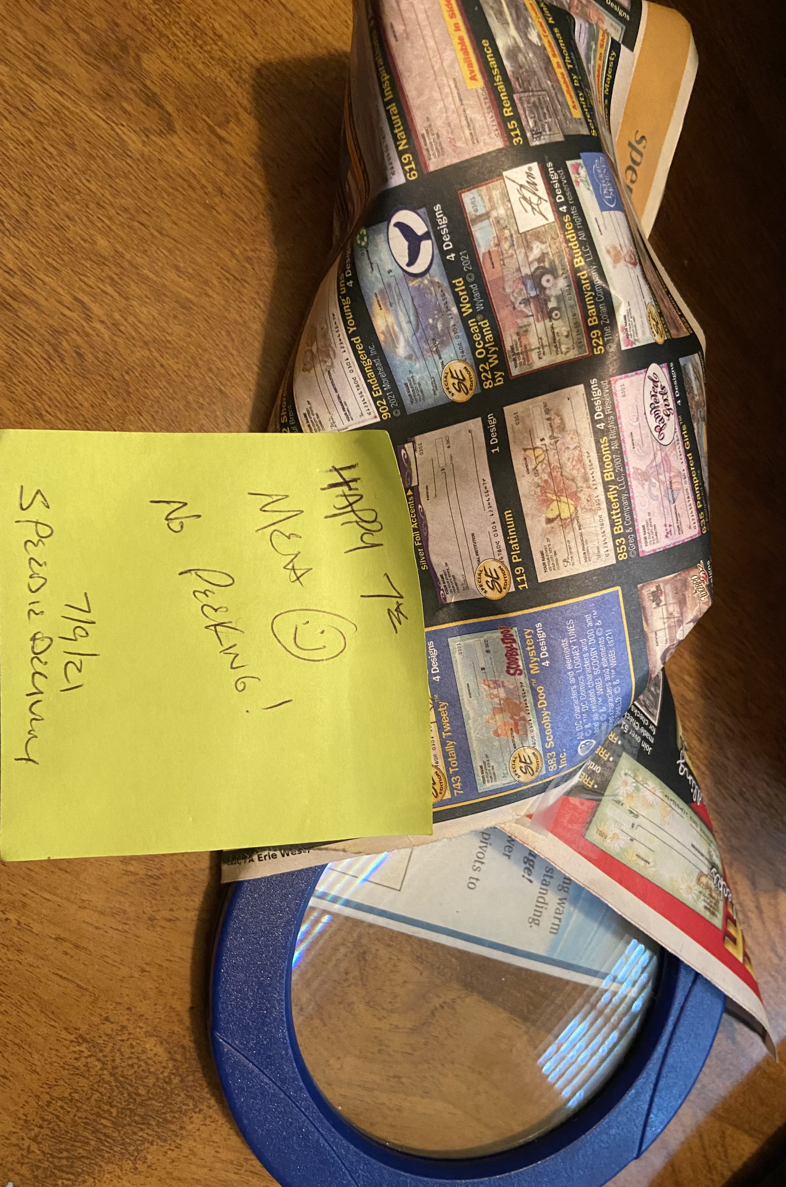 @Targaryen mismatched wrapping paper, packing tape and a brand new pack of KN95 masks, because clearly you don’t have enough.