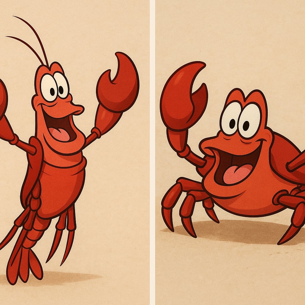 /showme Sebastian the lobster? Are there enough people out there confusing crabs and lobsters that it still thinks of Disney?(The pictures earlier in the thread may have gotten to the right place by mention of “mermaid”.)Welp, I don’t know what’s really going on, but apparently crabs and lobsters are similar enough that the AI training data considers them the same.