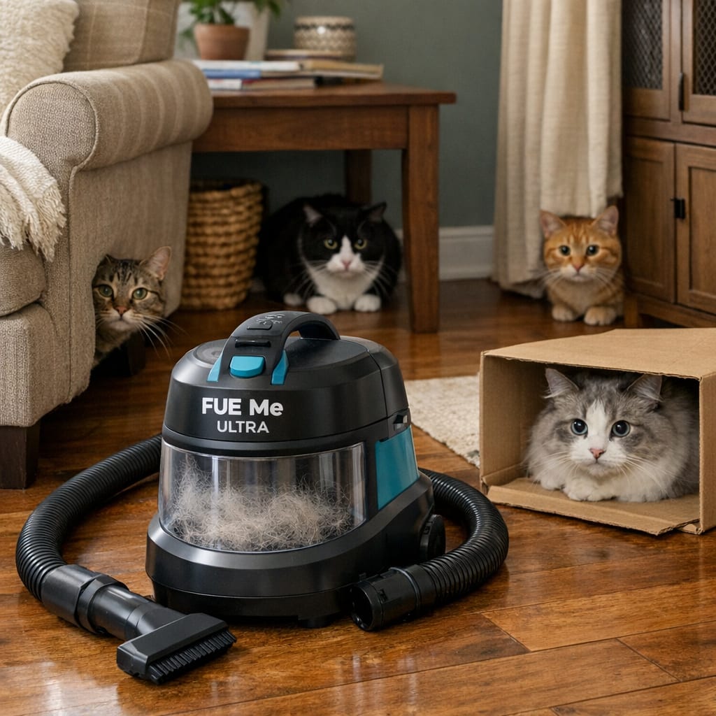 /showme cats hiding when you got out the fue me Ultra grooming vac