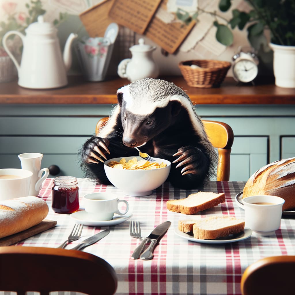 /showme honey badger flakes eating someone at the breakfast table