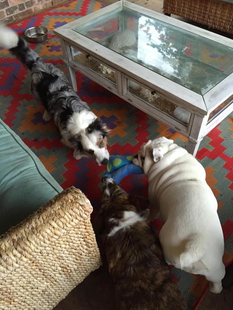 10My dogs loved their new toys from the pet bundle! They immediately grabbed their favorites and started hoarding them. I thought I'd share some crappy cell phone pictures of the fun. :-)