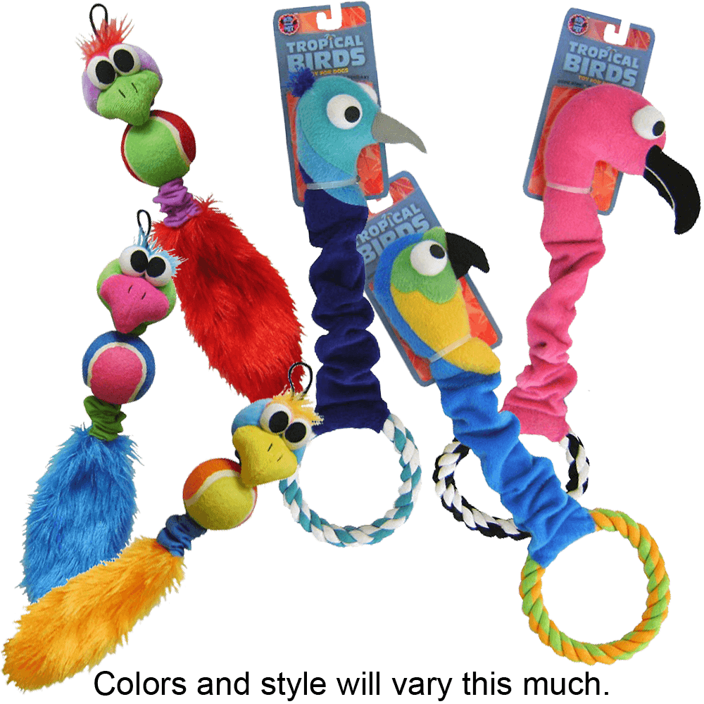 Specs ==== Model: Bow Wow 97250 (Bird ball toy) - Soft head, tennis ball body, and a squeaky tail, with stretchy connections in-between - Colors vary - Made in China Model: Bow Wow 96055 (Bird rope toy) - Design will vary - Rope ring, bungee body, and squeaky head - Filled with polyester fiber - Made in China Model: Dentley’s 1897C (Bacon bones) - 2-pack of bacon flavored stuffed bones - Designed for medium sized dogs (3in long) - Helps reduce tartar and plaque build-up for fresher breath - Ingredients: Beef shin bone, meat and bone meal propylene glycol, artificial flavor, added color (FD&C RED #40), potassium sorbate (a preservative) - Crude protein: Not less than 25% - Crude fat: Not less than 2% - Crude fiber: Not more than 1% - Moisture: Not more than 15% - Made in Brazil Model: Dentley’s 1882C (Bully stick) - Natural flavor braided bully stick - Designed for medium sized dogs (7in) - Ingredients: Bovine pizzle (water buffalo) - Made in India Model: Waverly WAV97200 (Rope toy) - Knotted loop tug toy - Extra durable - 1ft long - Colors vary - Made in China Model: Bow Wow 96035 (Road Kill jingle toy) - Design will vary - One jingle bell in each hand - Filled with polyester fiber - Made in China Condition: New Warranty: 90 Day Mediocre Estimated Delivery: 2/17 - 2/19Shipping: $5 or free with VMP What’s in the Box? ==== 1x Braided bully stick OR 2x Stuffed bones 1x Bungee bird ball toy OR 1x Bungee tropical bird toy 1x Road Kill jingle toy 1x Knotted loop tug toy Pictures ==== Example setRope variations Chewable variations Bird style variations Bird color variations Roadkill variations Rawr Price Check ==== $9.95 for bungee bird at eBay $7.97 for similar braided bully stick at Amazon $11.98 for similar stuffed bone at Amazon $9.95 for similar knotted rope toy at Amazon $9.95 for jingle friend at Amazon $6.99 for tropical bird toy at Amazon