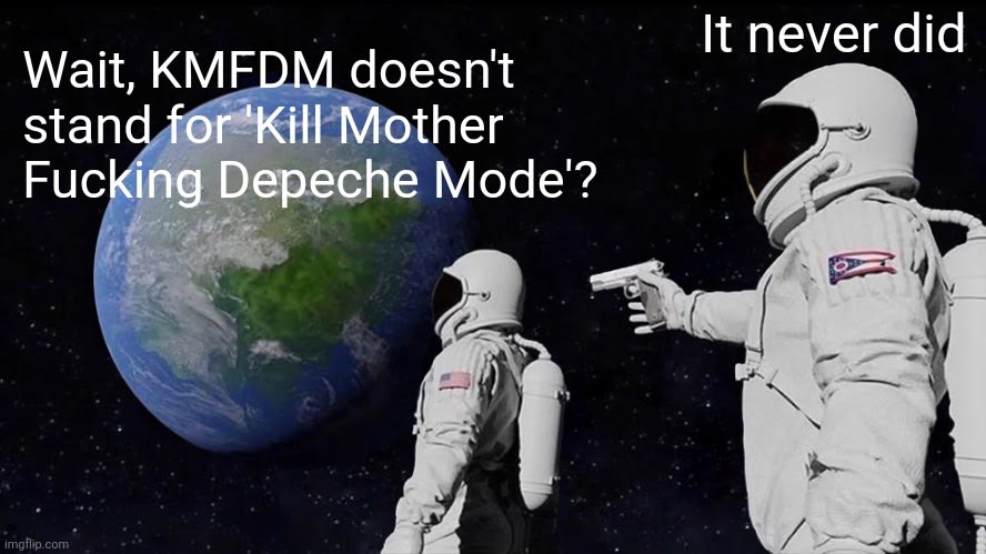 @Ignorant I was going to follow up with a Depeche Mode track, but it seems I was lied to my whole life and KMFDM does NOT stand for “Kill Mother-Fucking Depeche Mode” Today I learned…