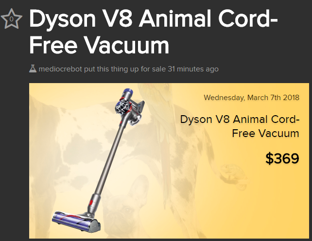 I just bought a new Dyson this past Black Friday. It’s the only time of year that they are truly discounted anywhere. I am not going to fault Meh on this fine Wednesday morning for stepping out of its comfort zone this one time to offer up a NEW, NAME BRAND item. Good effort on you, Meh, but not quite enough for us to click “buy.”
