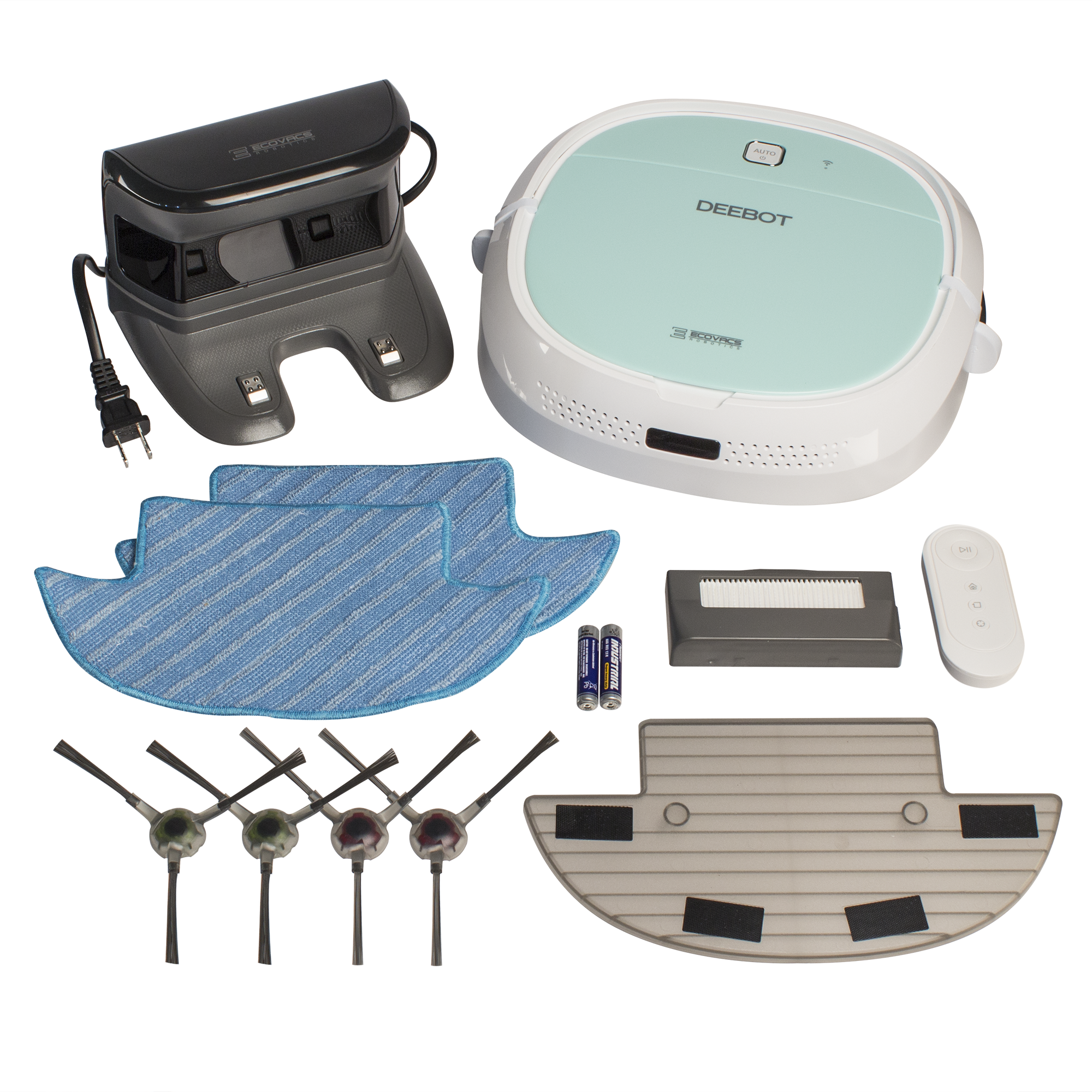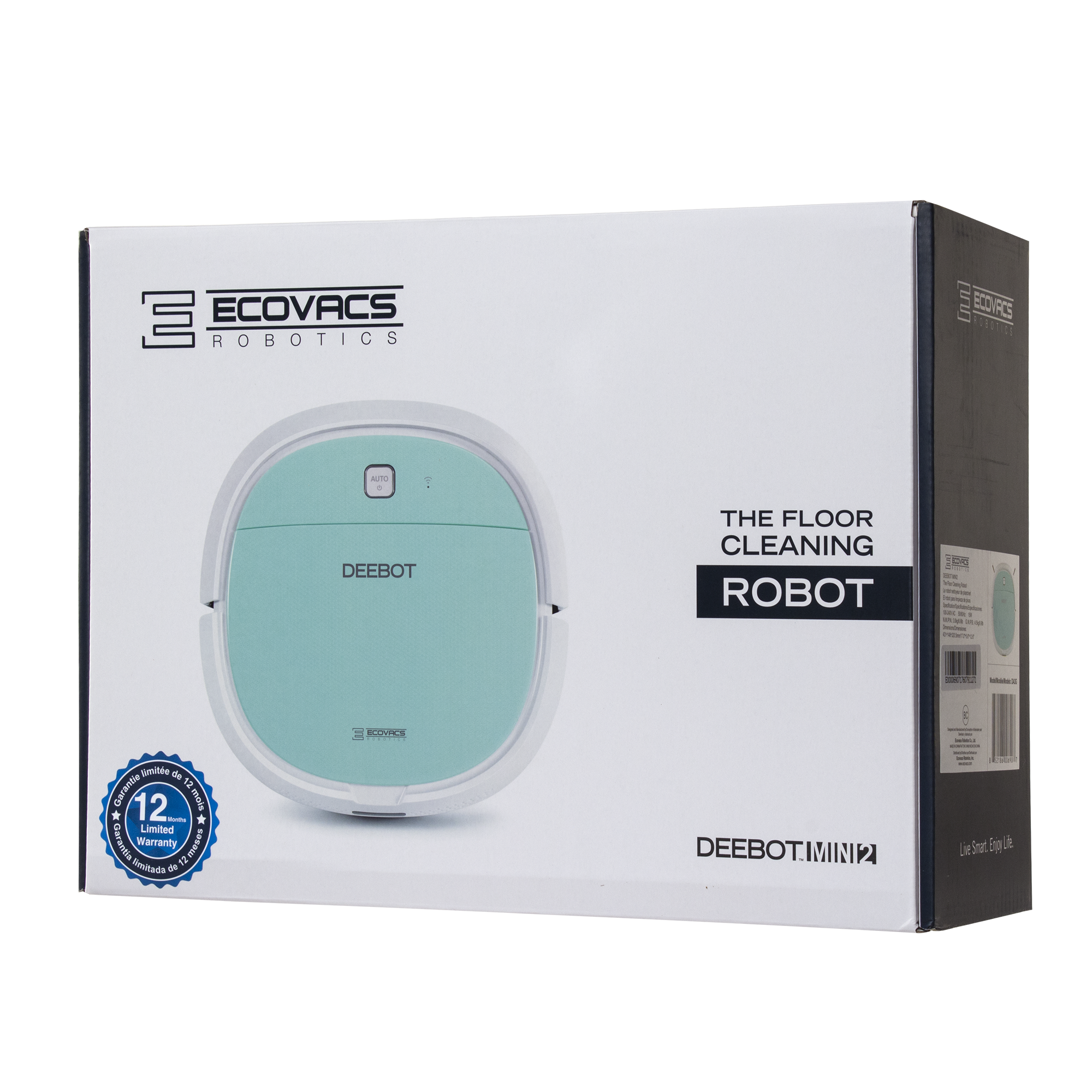 Specs ==== - Dimensions: 10.6 W x 3.2 H x 10.6 D inches- Machine Weight (lb): 6.6 - Max Door Sill Crossing: 1.4cm without Mop 1.6cm with Mop - Noise Level (db.)(Standard/ Max, Intensive): 56dB(A) - Dust Bin Capacity(ml): 300 - Charging Time(h): Approx.4 - Wattage: 15 Watts- Voltage:12 Volts- Suction/ Main Brush: Suction - Surface Covered: Barefloor - Working Time: Approx. 90 min - Filter: High efficiency filter - Side Brush: Dual - Anti-Drop: YES - Anti-Collision: Bumper Rail Infrared Anti-Collision Sensor - Anti-Block: YES - Auto Charging: YES - When battery power gets low, DEEBOT automatically returns to its charging dock, all by itself - Remote Control - App Control - Time Scheduling - Optional Mop- Tangle-Free Suction For Hairs - Selective Cleaning Modes for Various Messes - Auto mode for general cleaning - Edge mode for cleaning specific edges - Spot cleaning for when intensive spot cleaning is required What’s in the Box? ==== - 1x Ecovacs Deebot Mini 2 Robotic Vacuum - 1x Home Charging Base - 2x Mopping Pads - 4x Spinning brush heads - 1x Replacement filter - 1x Remote - 2x AA BatteriesPictures ==== DeebotThings IncludedIn The BoxUpside DownSidewaysTop ViewWatch OutMappingSensorsAnti-DropMappingOh crapPrice Comparison ==== $179.99 at Amazon