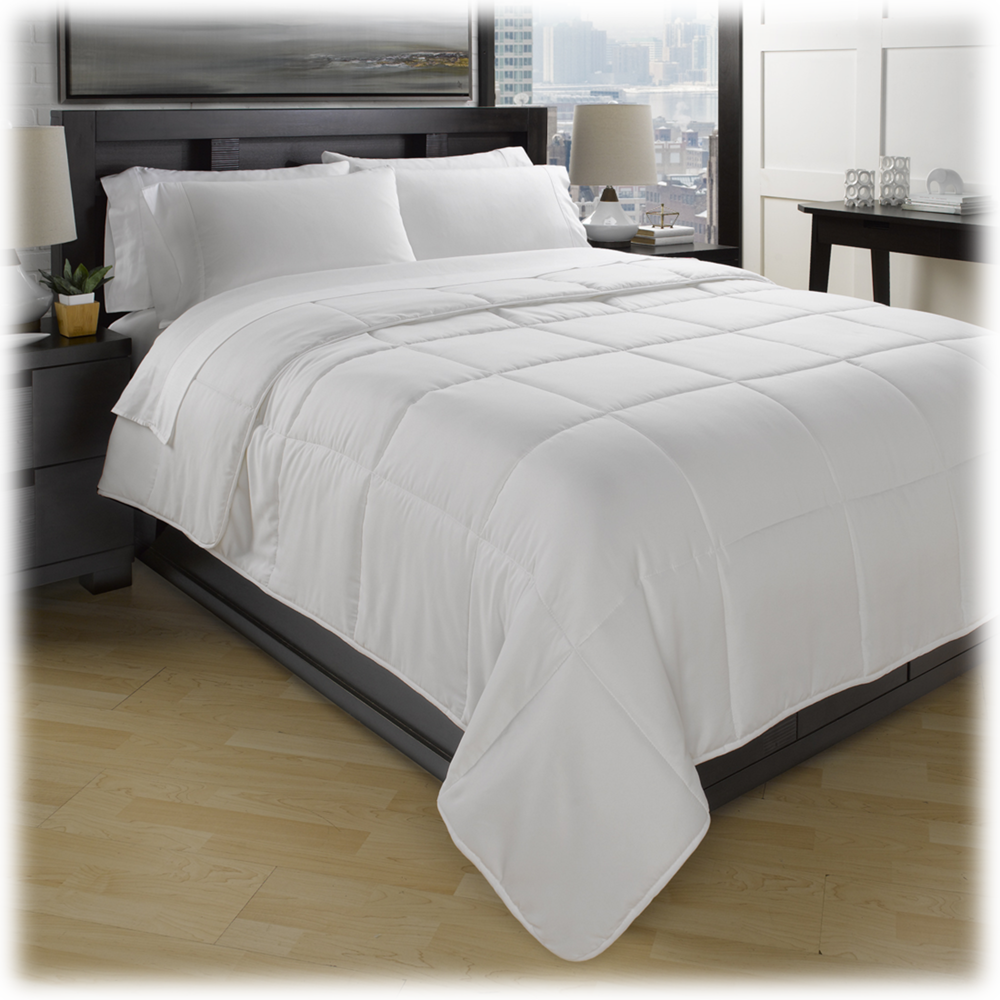 Specs====- Model: CF002120A- Condition: New- 100% microfiber outside- 100% polyester filling- 220 Thread Count - Thickness: ~ 2.5"- Twin: 60" X 86"- Full/Queen: 86" X 86"- King: 102" X 86"What’s in the Box?====1x Comforter Pictures====ColorsStackedWhite foldedWhite bedTan foldedTan bedGrey foldedGrey bedBlue foldedBlue bedBlack foldedBlack bedLight blue foldedLight blue bedRed foldedRed bed"I think it’s time I left" Price Comparison====$42.59 - $58.98 at Amazon