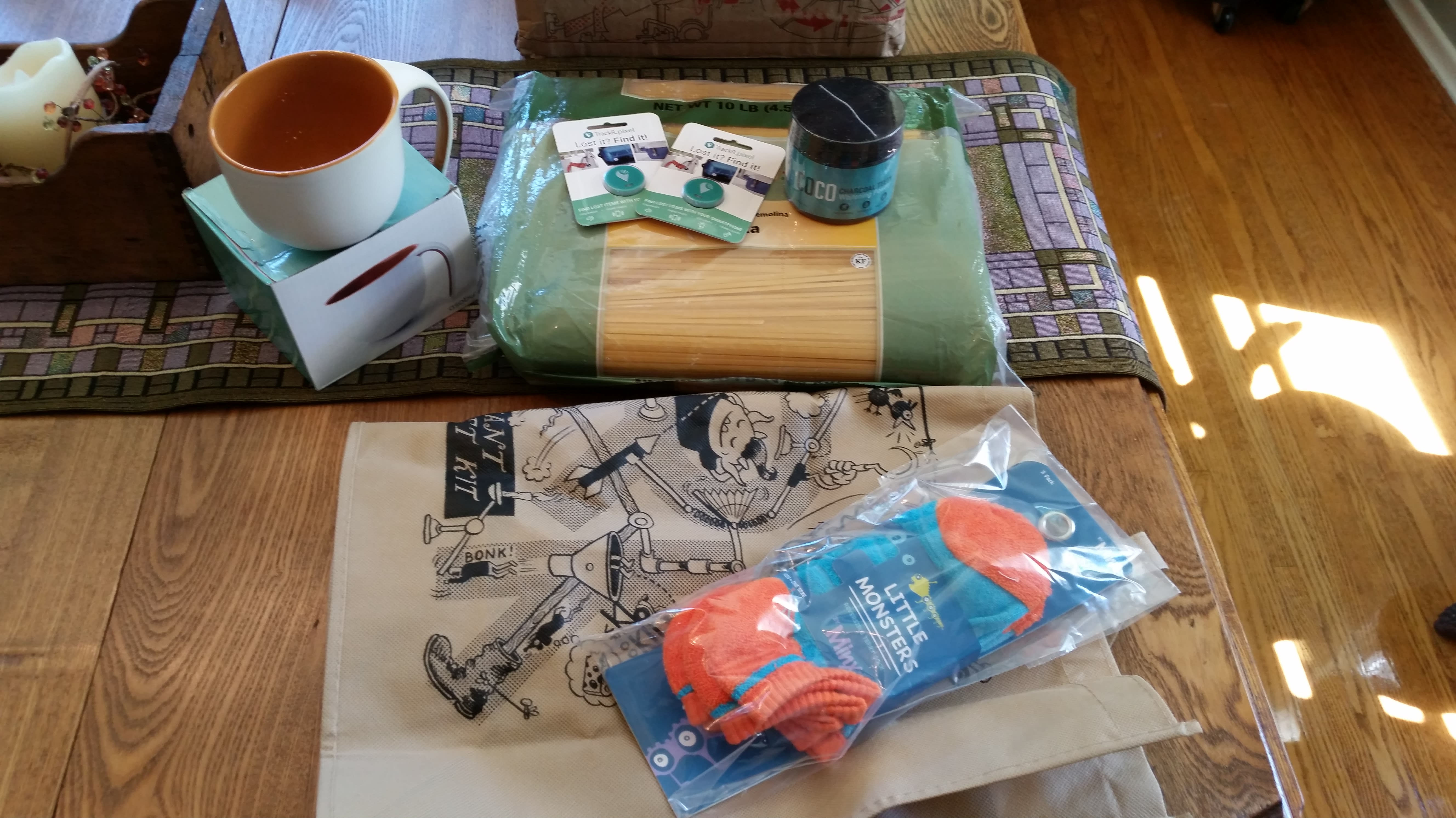 I had to take the photo on my kitchen floor, because the items blended into my drab apartment carpet.