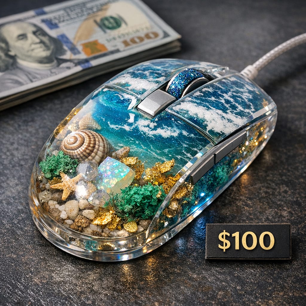 @medz Here’s the image you requested for “mouse made of resin that costs a hundo dollar bucks”