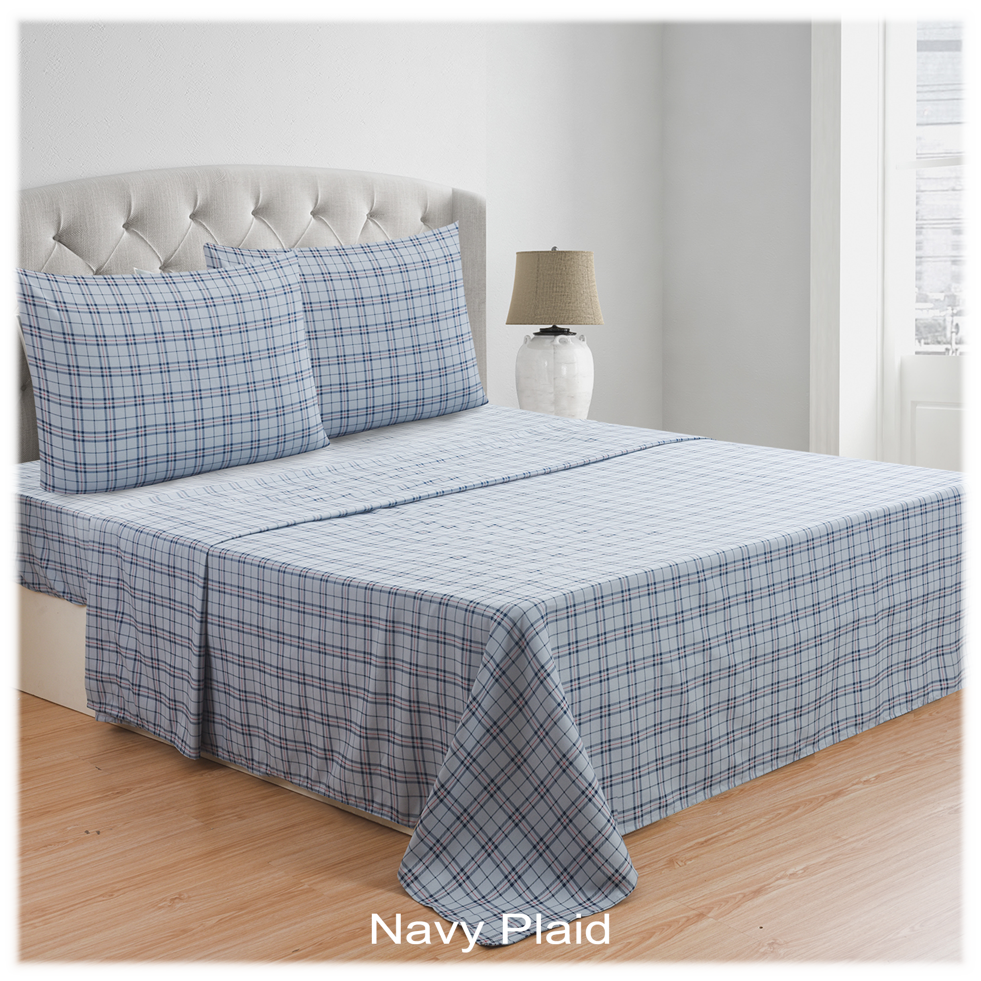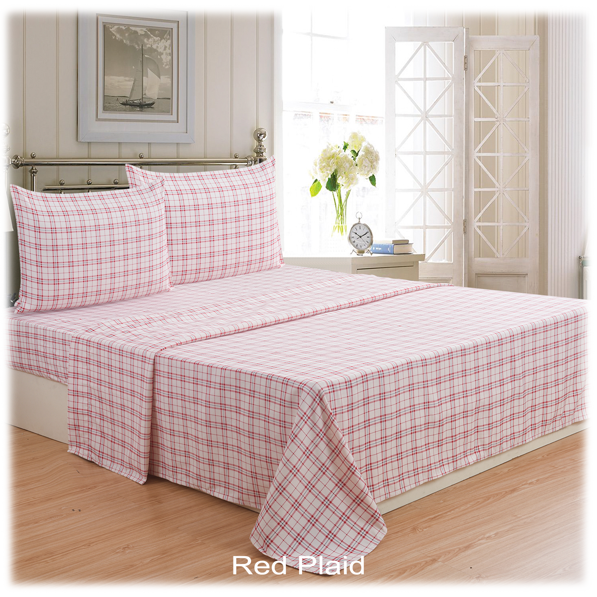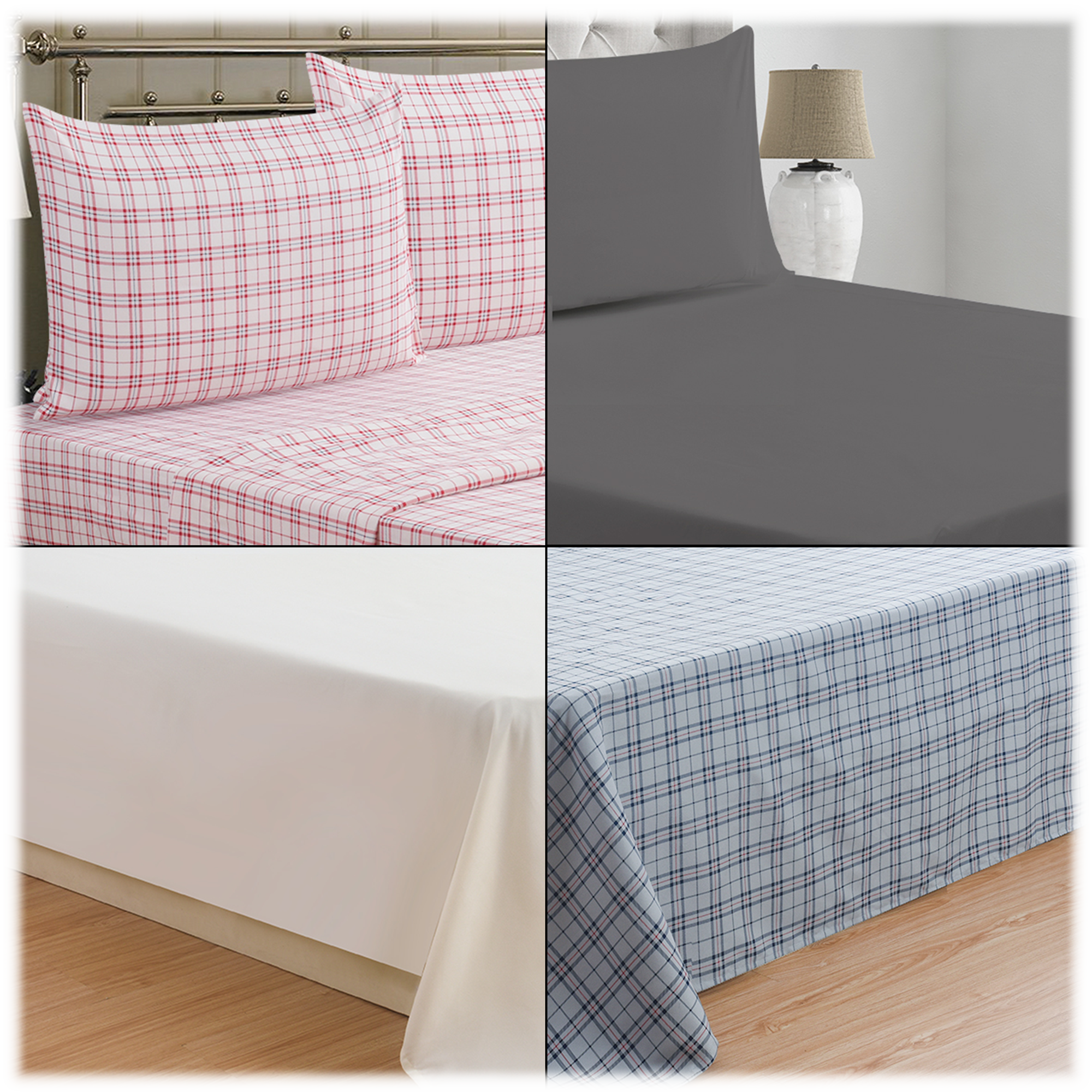 Specs====- Model: SF062617- Condition: New- Material: microfiber flannel - Soft as cotton but as durable as polyester - Double brushed for softness - Shrink and pill resistant- Materials: 100% Polyester - Max Mattress Depth: 18" (15 for twin size) - Machine wash warm on gentle cycle, tumble dry low heat What’s in the Box?====1x Fitted Sheet 1x Flat Sheet 2x Pillow Cases (1x for twin size)Pictures====ColorsIt doesn’t look like this unless you sew it yourselfNavy PlaidClose upPackagingRed plaidClose upPackagingIvoryClose upPackagingGrayFront viewPackagingPlease make these like in Sound of MusicPolitics Price Comparison====$40.20 - $79.99 at Amazon (similar)