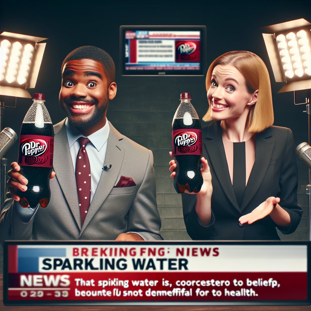 /showme a TV news report where they announce that sparkling water is actually bad for you and the reporters are laughing at the people who drink it, while smugly sipping on giant bottles of Dr Pepper