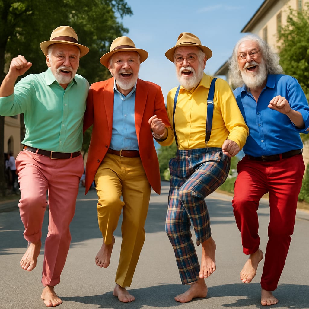 /showme a group of dazzling old men prancing around while not wearing slippers