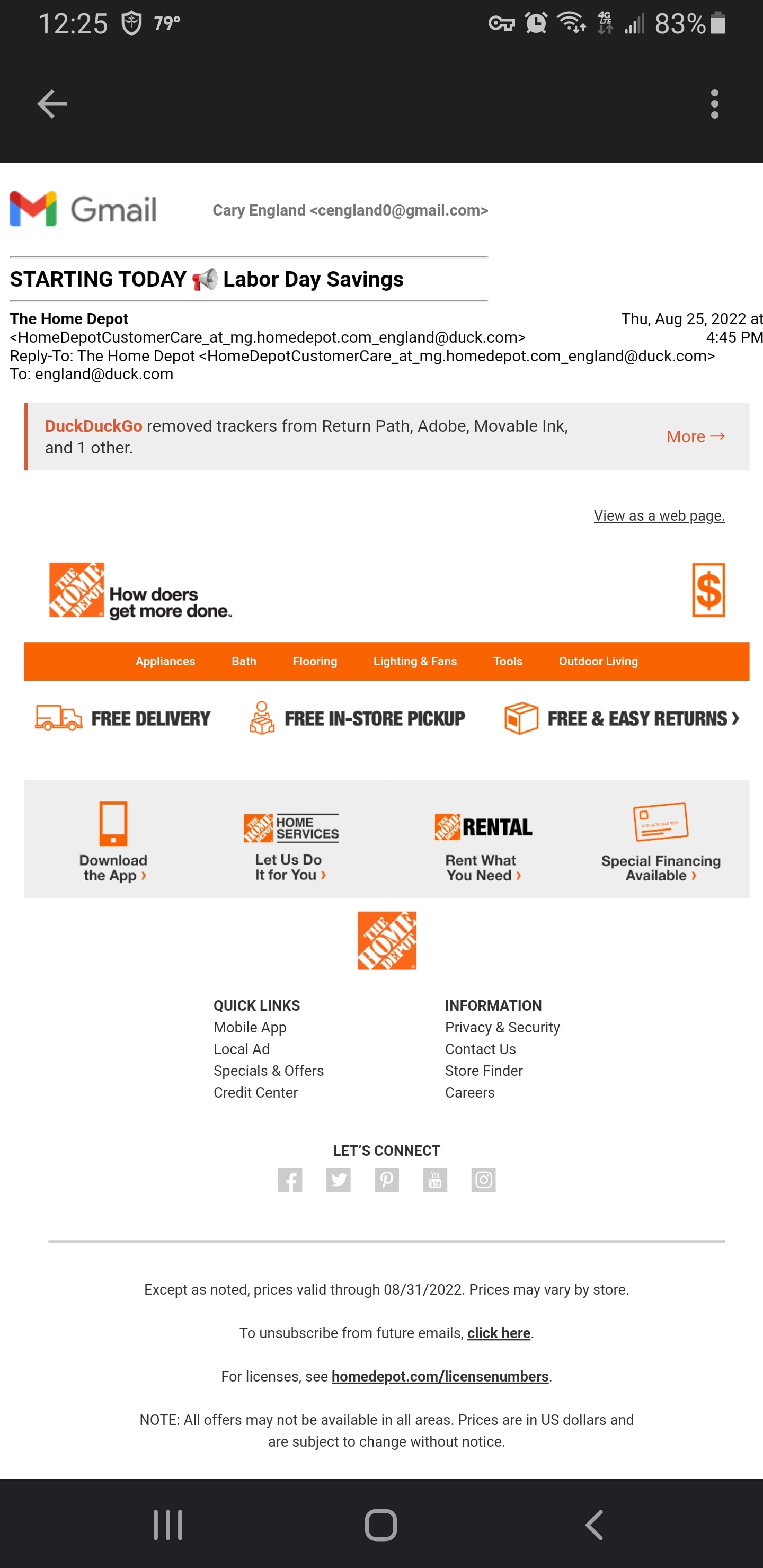Free DuckDuckGo email tracker filtering
