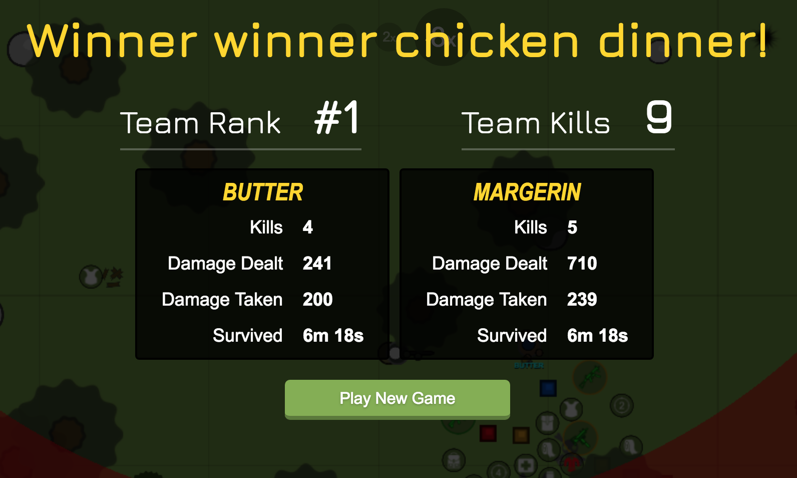 If you haven’t tried it yet, Teams are a lot of fun. @chadp and I got a chicken dinner after a few tries (he hit “start” before I could finish typing Margarine).