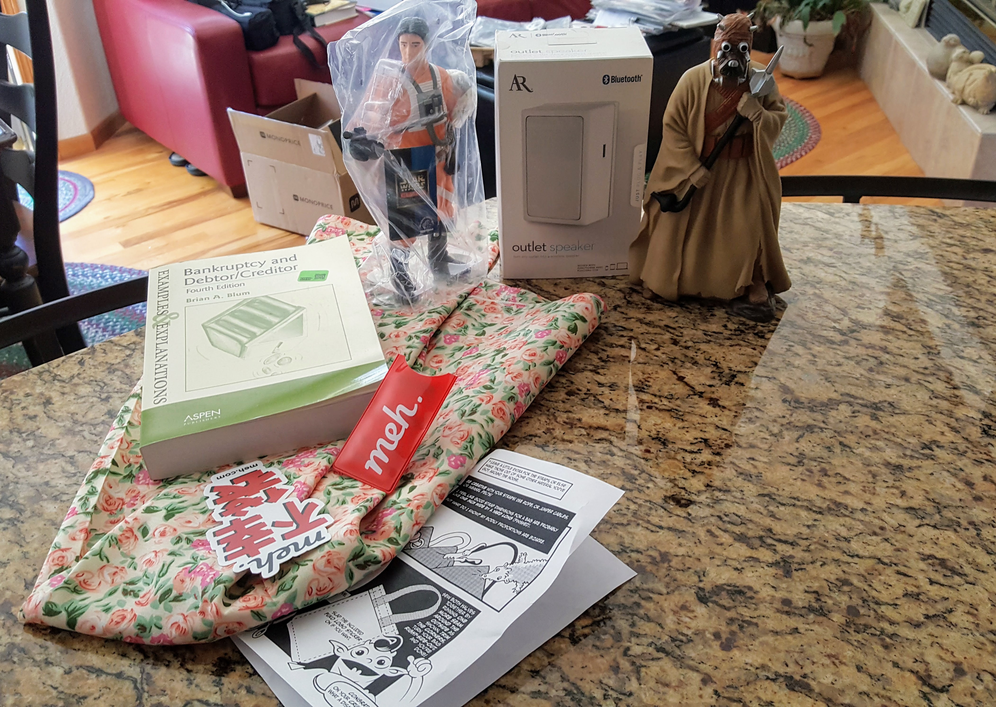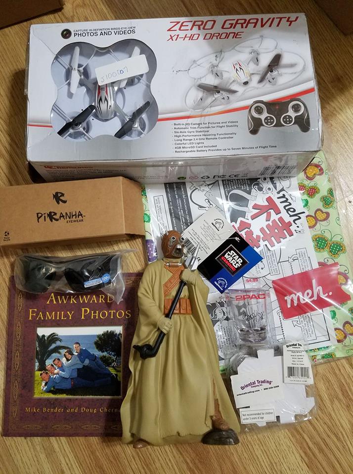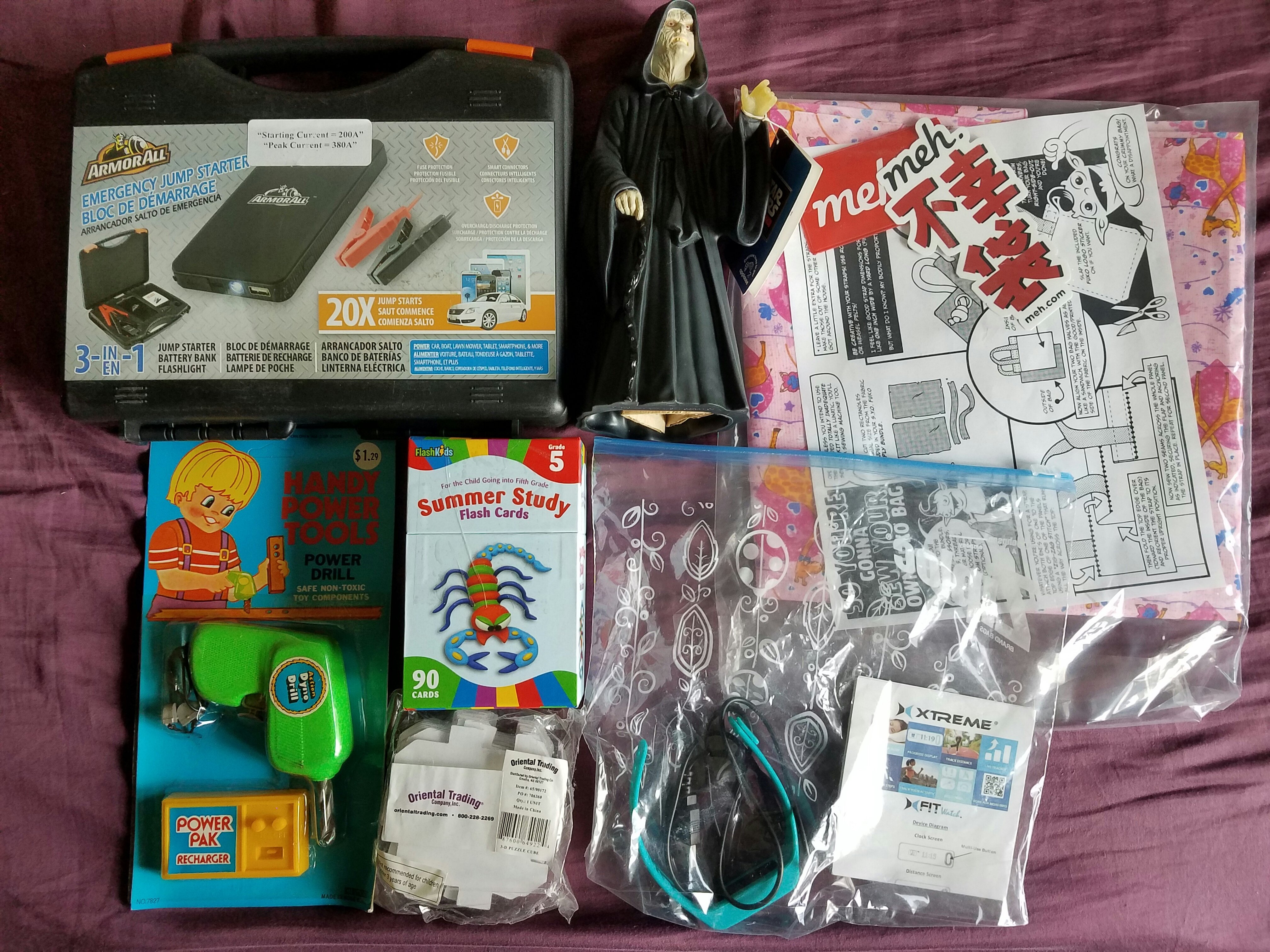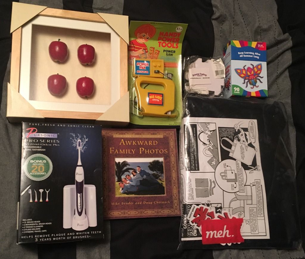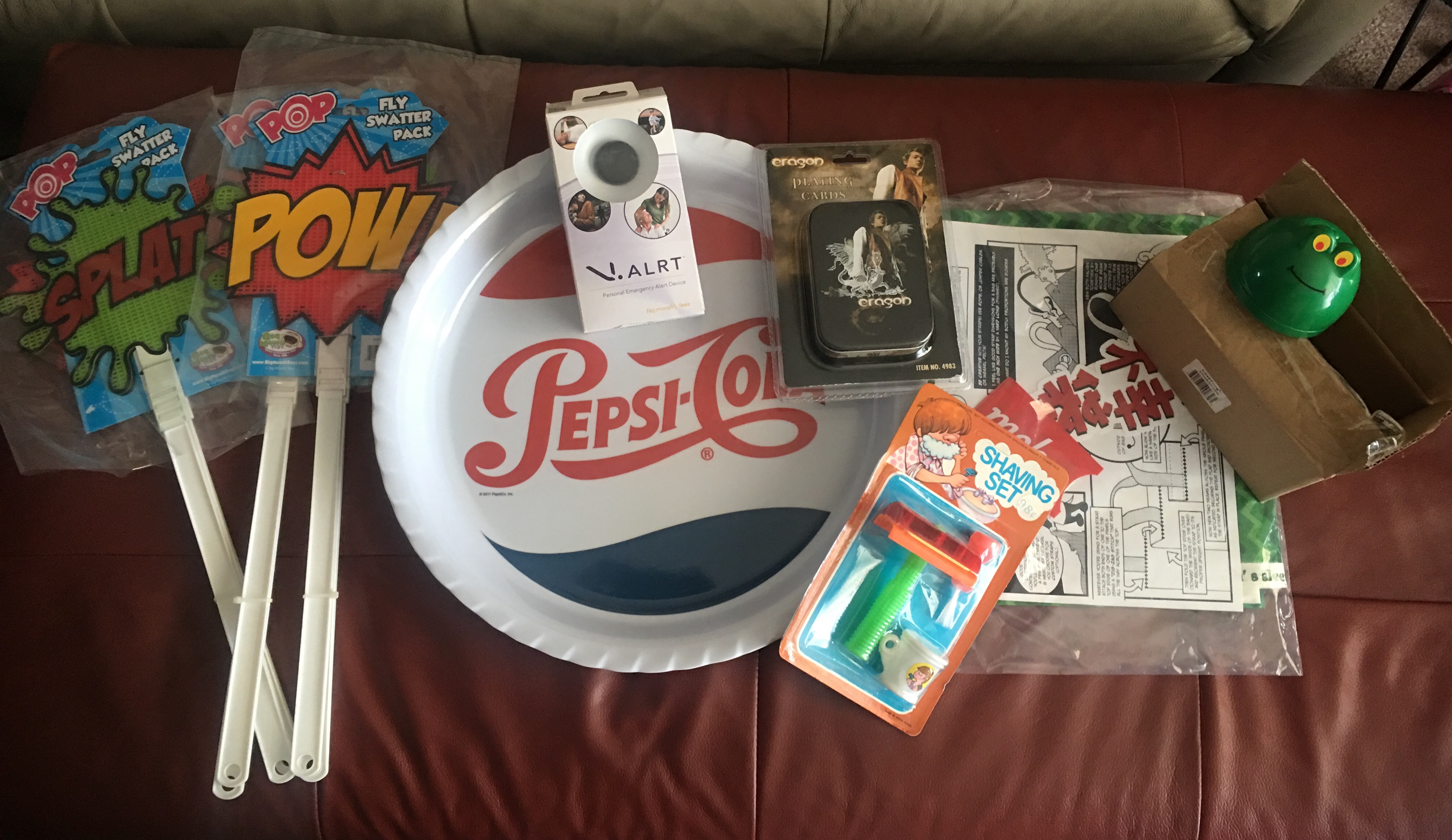@Barney - On second thought, maybe I should hold on to them until they’re “vintage”? Too bad I didn’t do that with the wedding clock, Awkward Family Photos book, and skull mug which I also rec’d in previous fuku/os. Also got one of those bug zapper rackets in a long ago boc.
