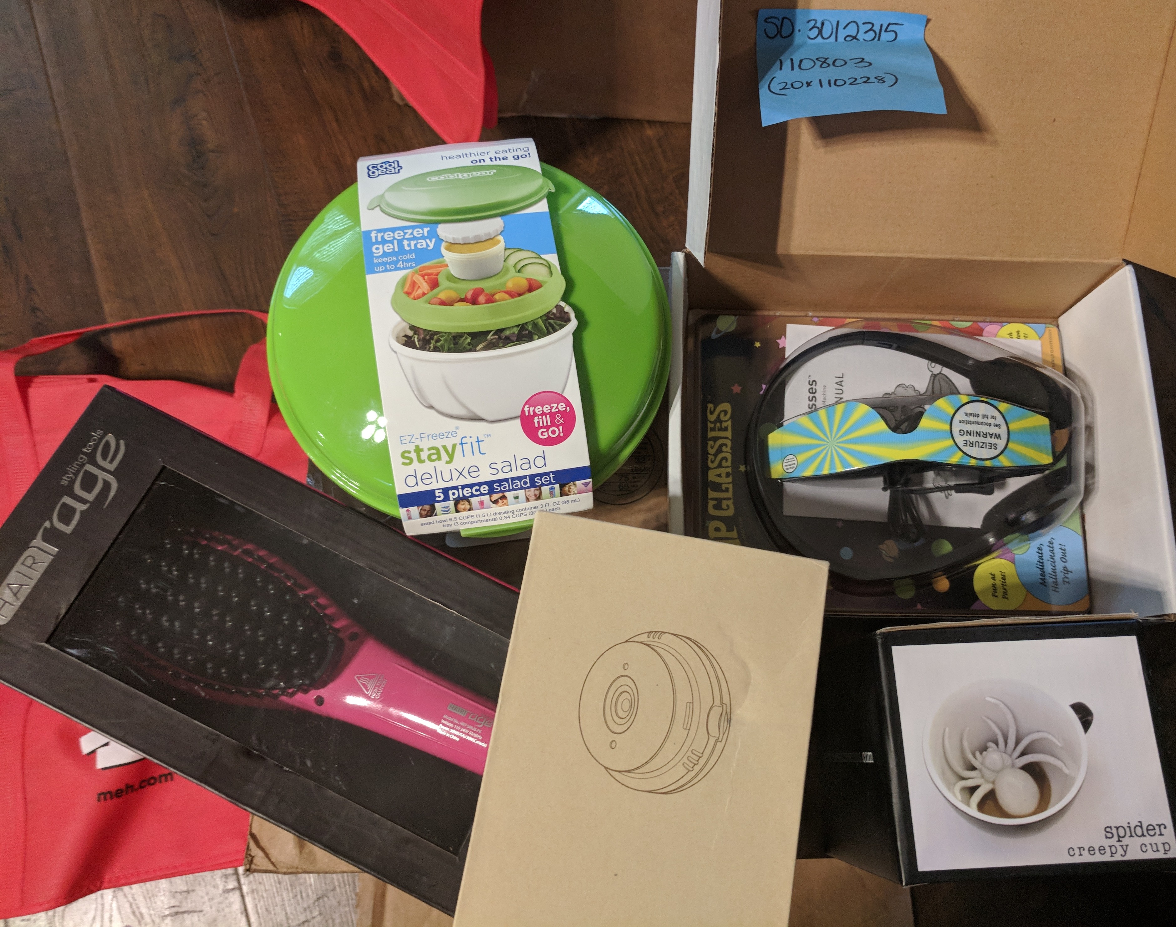 Oh, my. I have managed to snag around 4-5 fukos, and I thought I had hit the jackpot when I got a Sphero in one of them. But now…I received one fuko bag (not pictured), one meh phone stand (some assembly required - not pictured), and this: https://imgur.com/a/s3wGHlt