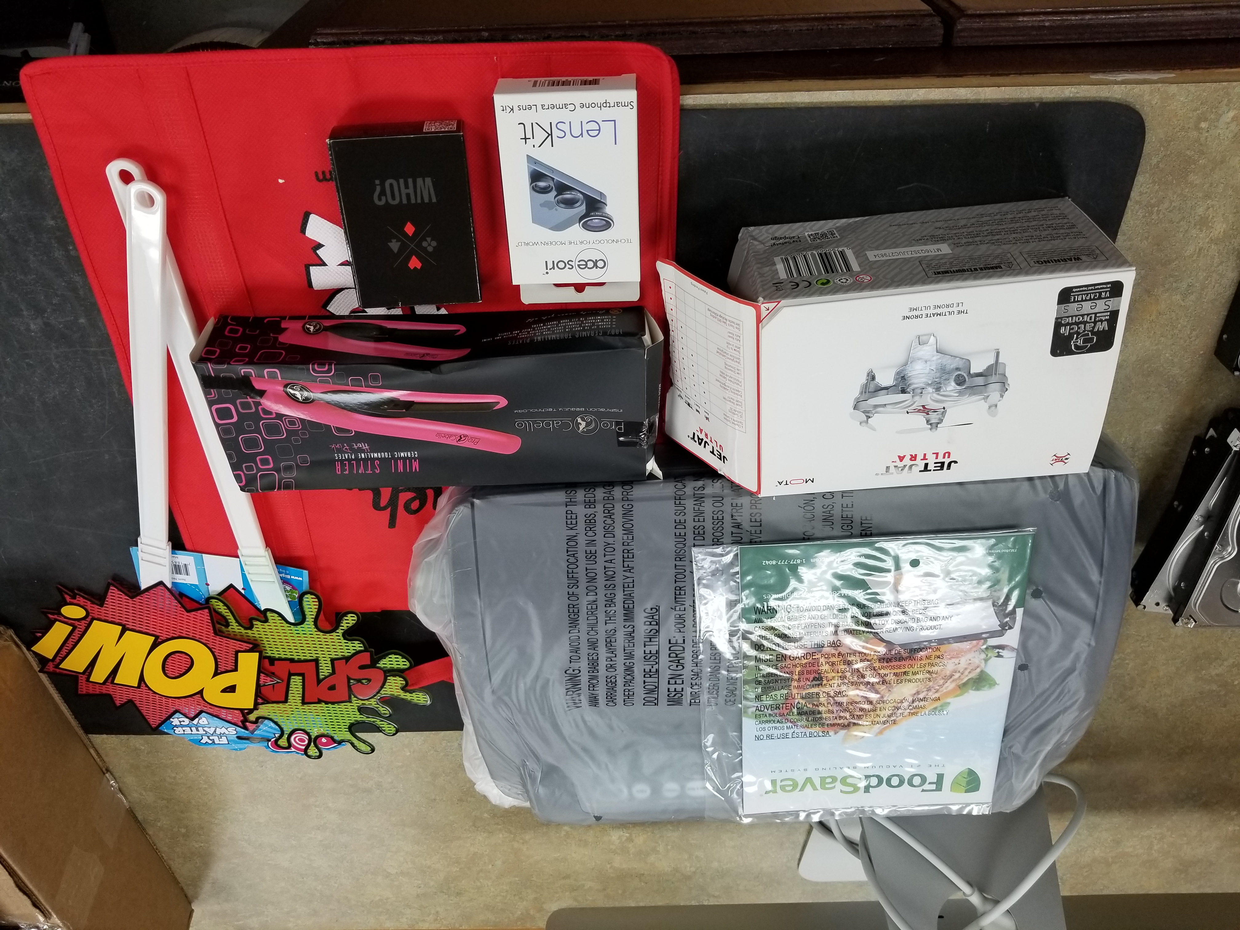 Big items all appear to be previously opened. Brush works. Not sure about watch and camera. Anybody want to trade me for a door bell camera?