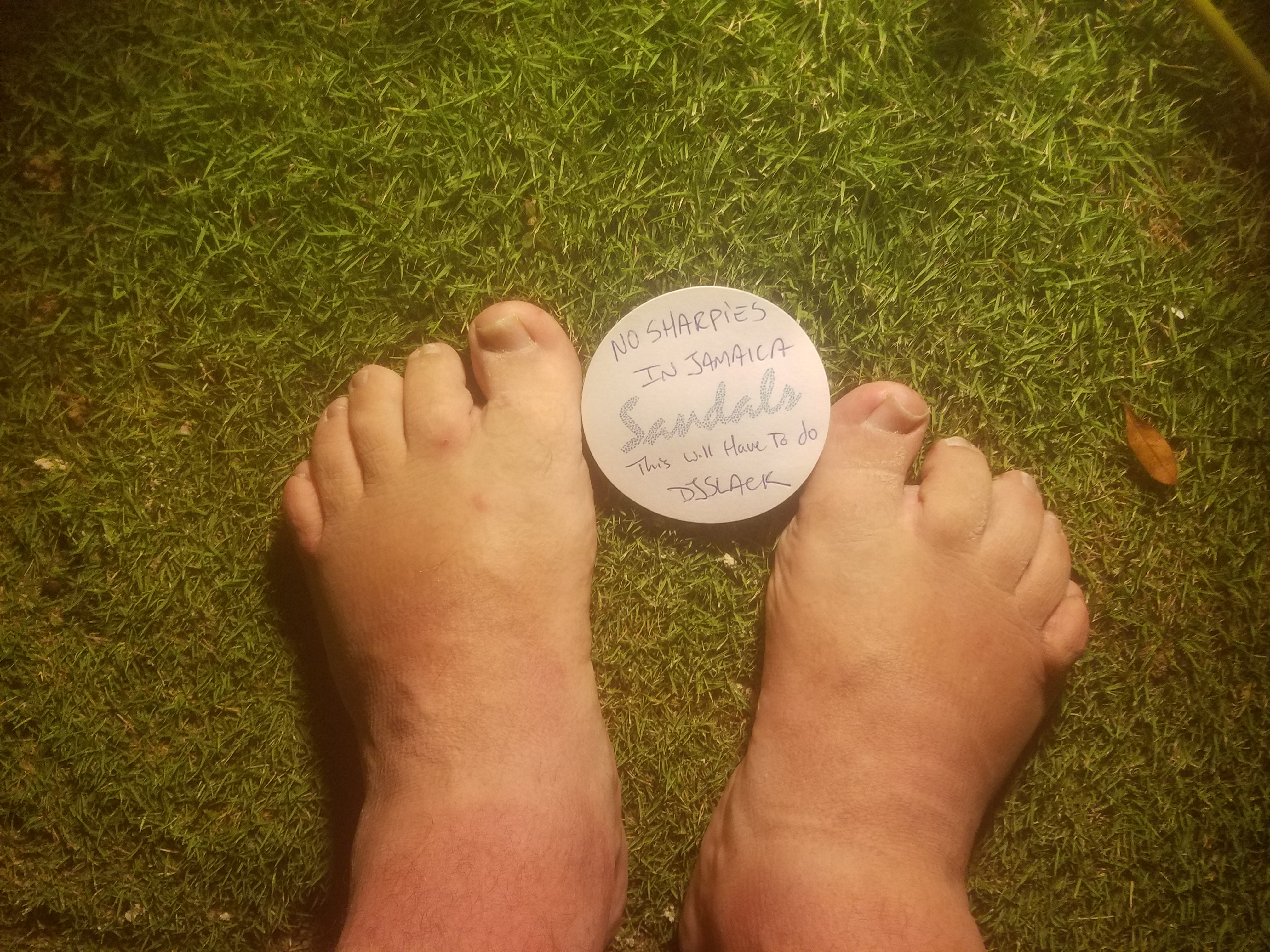 @KDemo yeah, mon! Didn’t want to try to write on my foot with a ballpoint pen, between sunburn and sand fly bites I expect that would have been torture.