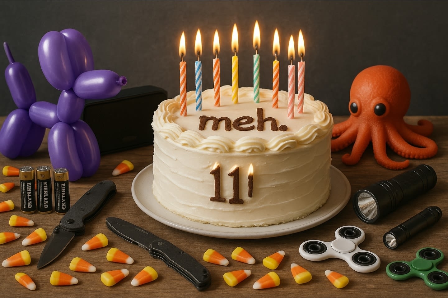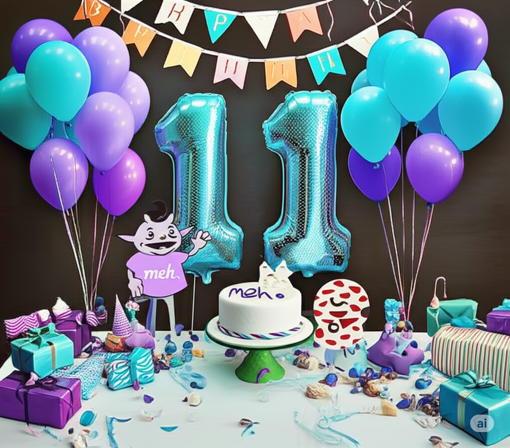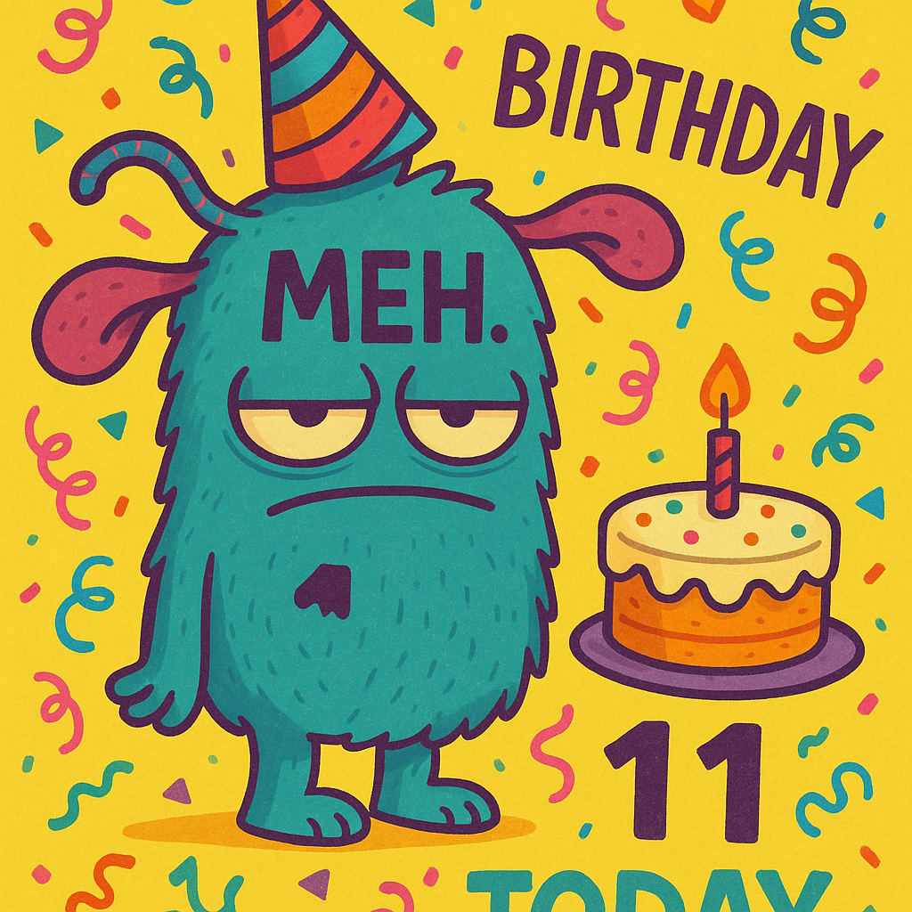 Plug in something wacky + Meh + birthday + 11 into your favorite AI generator and show us the results in a comment.