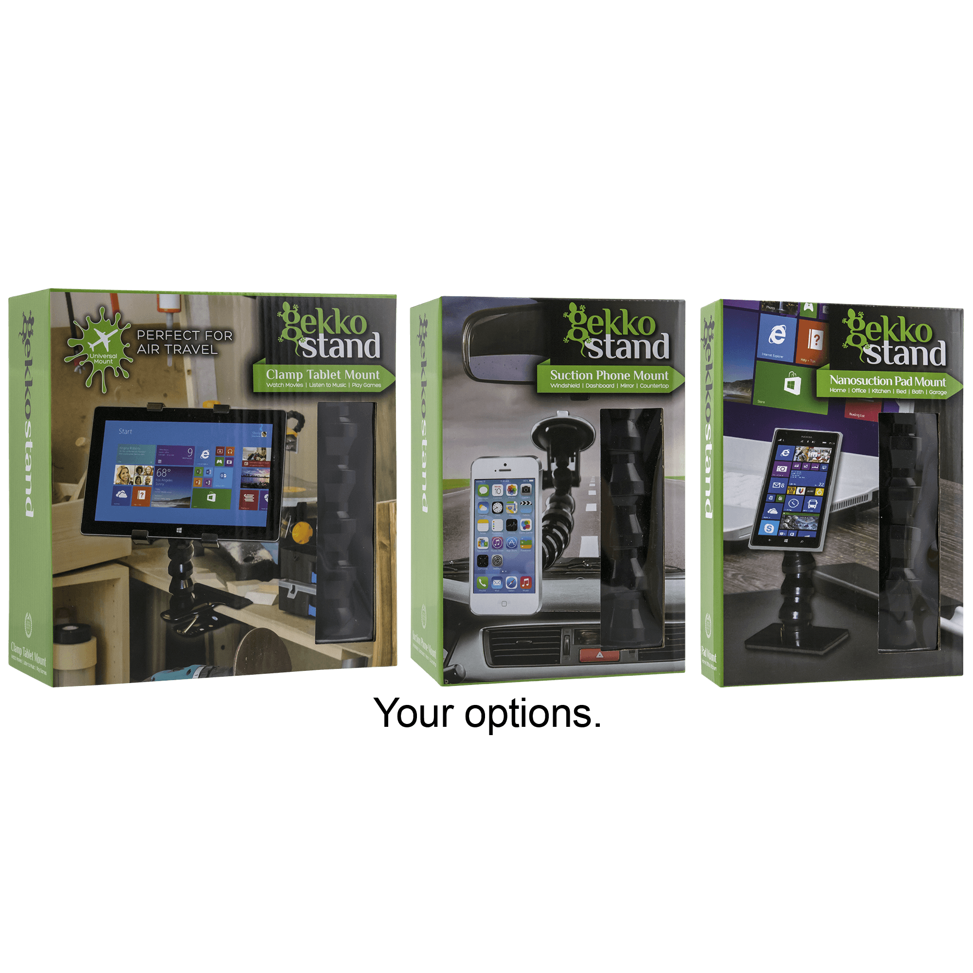 Already have Kensington phone holders for cars that clip to vents or to suction cups. Happy with those.