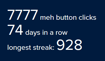 It never seems to fail, I miss a day within one week of a meh-rathon. What is up with that?