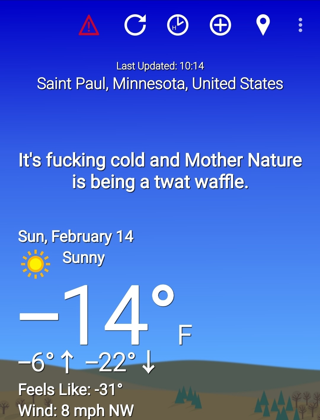 It’s -8°F right now, but the wind hasn’t started up yet, so not too bad.