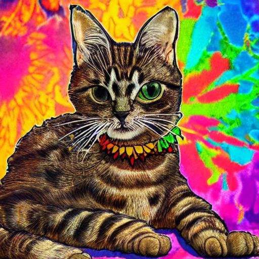 /showme studio photo of a relaxed tortoiseshell cat dressed as a Grateful Dead fan --steps 75 --seed 1138