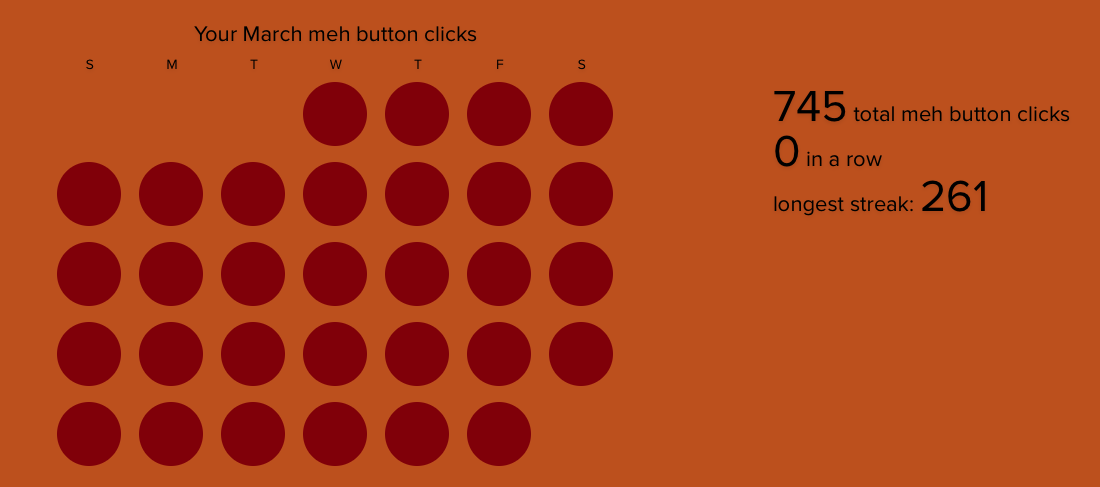 If you are at Meh HQ, and click the Meh button when the site rolls over on April 1st, you will get your 1,000th Meh click on April Fools Day.