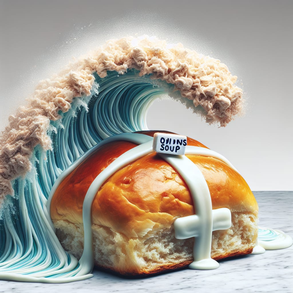 /showme Person named OnionSoup engulfed in a tidal wave of icing on top of a hot cross bun sepia toned photorealistic seed=42