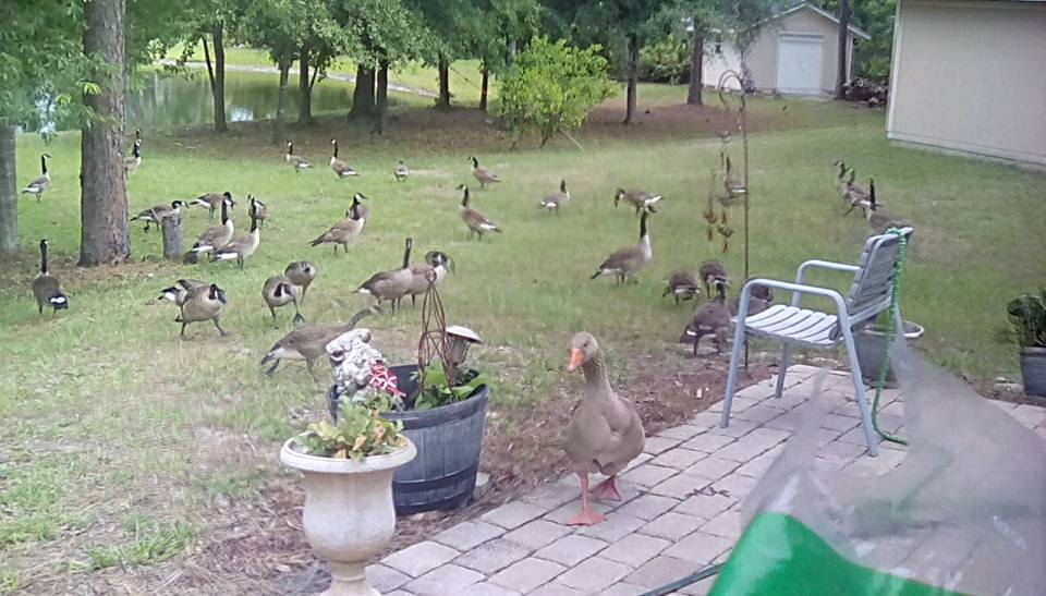 @cranky1950 They’re NOT MY GEESE. The domestic goose is an escapee from a farm near here. Also, I fenced my patio off so no more goose manure decorates it. I may have tossed stale bread onto my evil neighbor’s patio after dark, though.