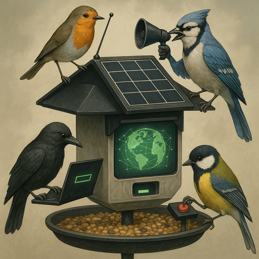 /showme birds using Hello Birdie Solar Roof Smart Bird Feeder as power source to take over world.